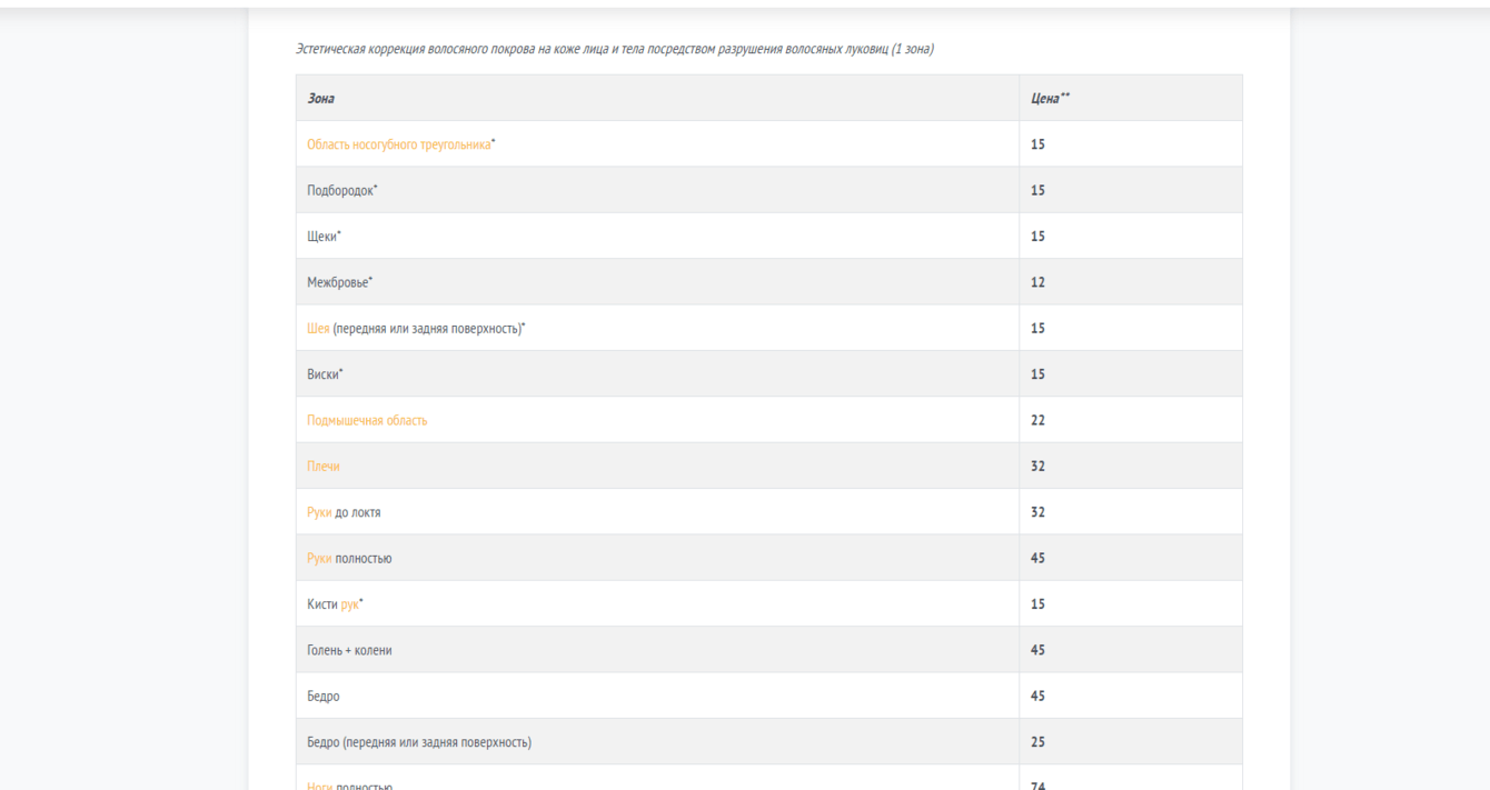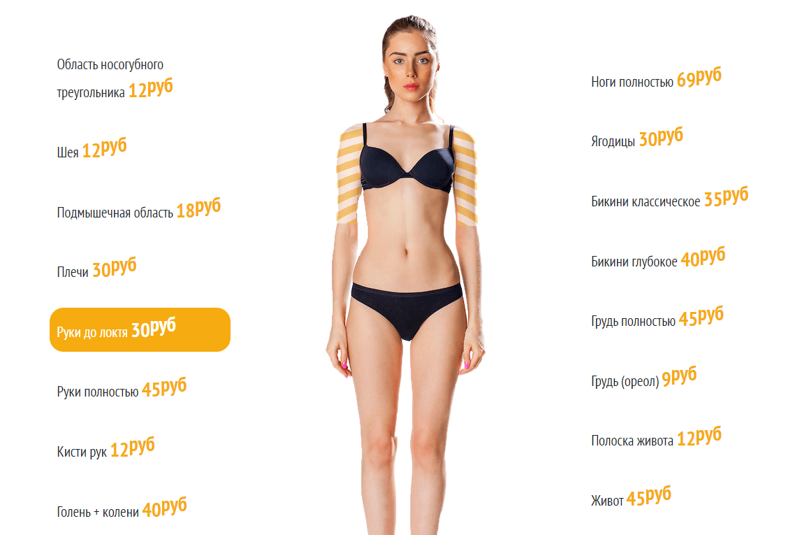 - Добавить визуальный прайс: Визуальный прайс с заштрихованной областью для обозначения зоны эпиляции для улучшения поведенческих факторов.