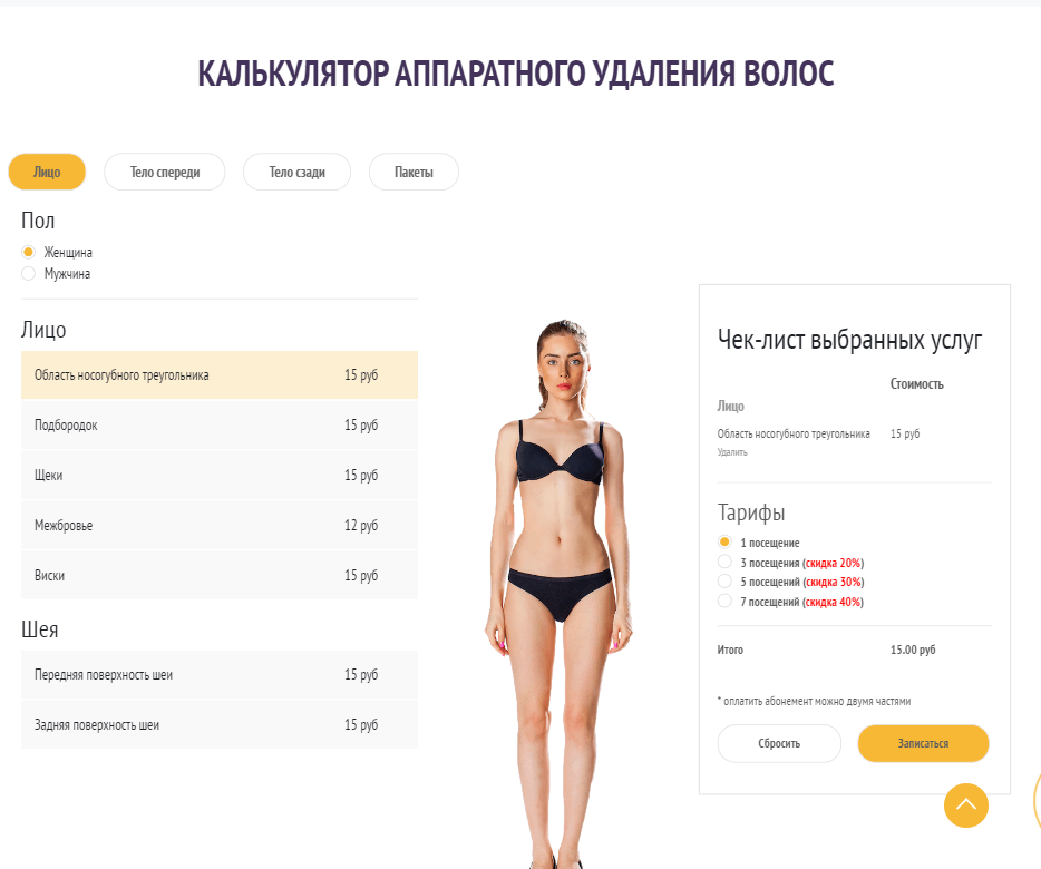 - Разработать калькулятор стоимости эпиляции: Для улучшения удобства пользователей и повышения конверсий.