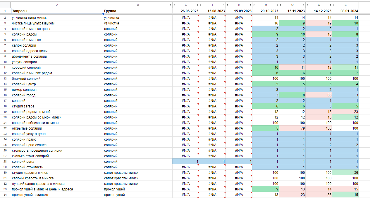 - Через два года сайт был в ТОПе Google по запросам «солярий минск/цена».