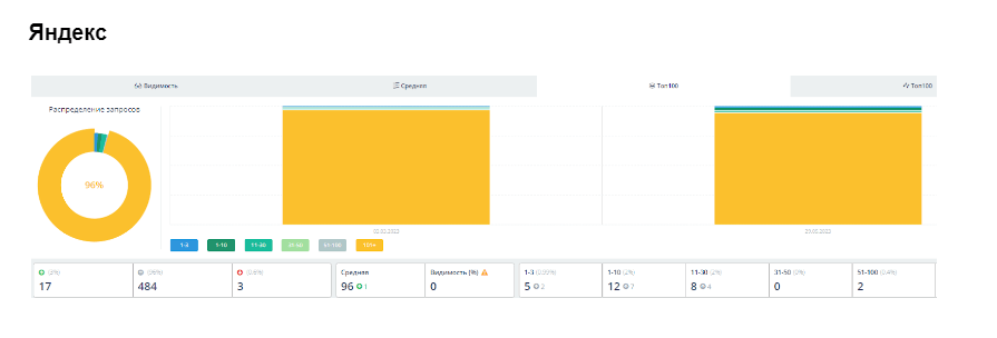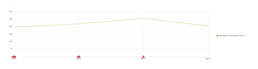 Статистика февраль 2022 - апрель 2023 (данные взяты из Я.Метрики и Топвизор):