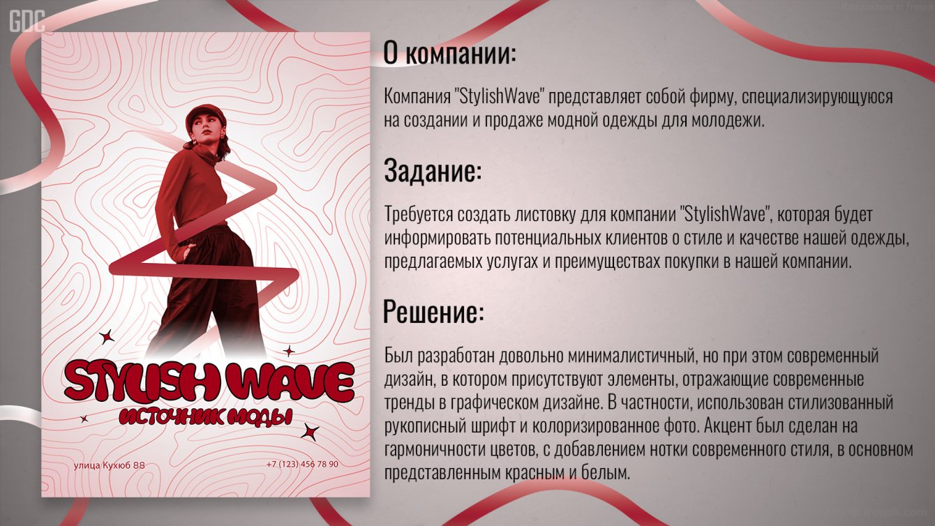Требуется создать листовку для компании "StylishWave", которая будет