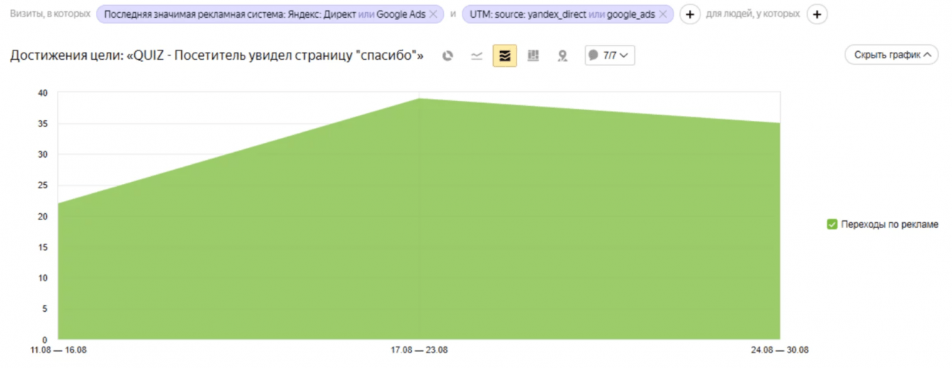 Увеличить количество целевых заявок с контекстной рекламы. Клиент пришел с проблемой высокой стоимости заявки и от этого их маленького количества. В основном заявки шли с youtube-канала и с площадки Яндекс.Дзен. У клиента было ощущение что что-то не так с контекстной рекламой и можно лучше. Вариант распределить бюджет на Youtube и Дзен рассматривался в крайнем случае из-за того, что заявки с этих площадок доходили до продажи долго.