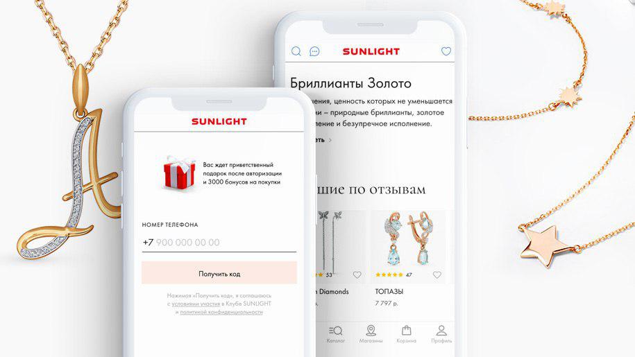 Сети ювелирных гипермаркетов SUNLIGHT, включающей более 400 магазинов по всей России, требовался эффективный канал мобильных продаж и коммуникации с покупателями. Для решения этой задачи компания запустила многофункциональное мобильное приложение, позволяющее выбирать, бронировать и заказывать ювелирные украшения 60 брендов.