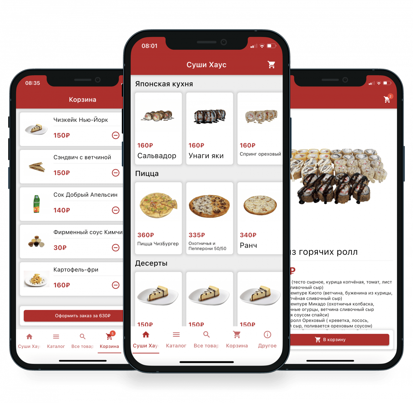 Разработать мобильное приложение интернет-магазин по доставке суши и роллов.