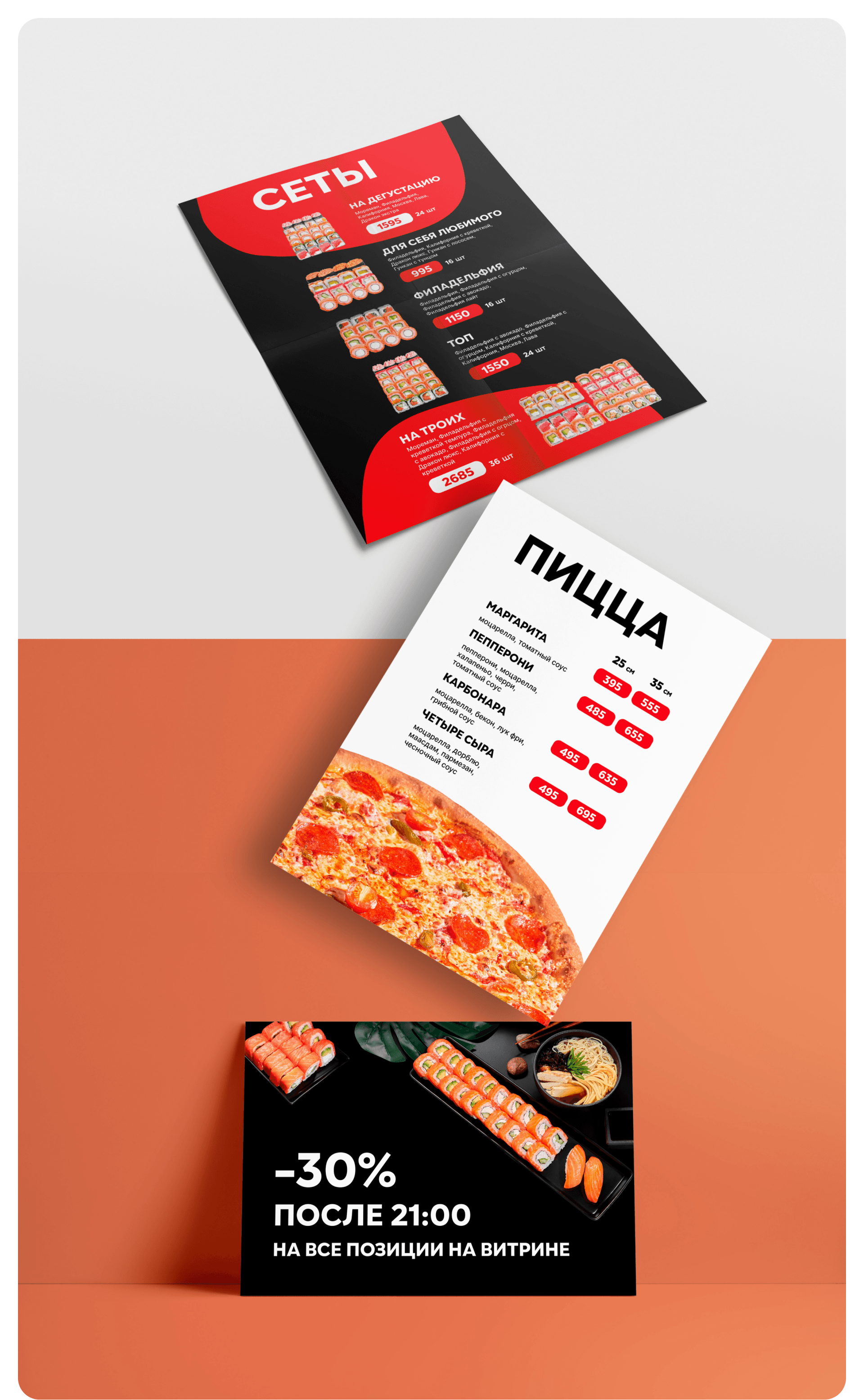 Мы разработали экранные меню для новой точки Суши Маркет в Москве, улучшив визуальную привлекательность и удобство использования. Наши экраны меню акцентируют внимание на современном дизайне, высококачественных изображениях блюд и интуитивной навигации. Основная цель — создать приятный пользовательский опыт и эффективно продемонстрировать ассортимент и актуальные предложения.