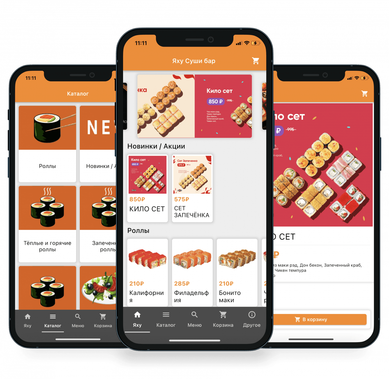 Интернет-магазин по доставке суши и роллов: разработка мобильного приложения Яху Суши Бар (iOS/Android), в котором пользователи могут: