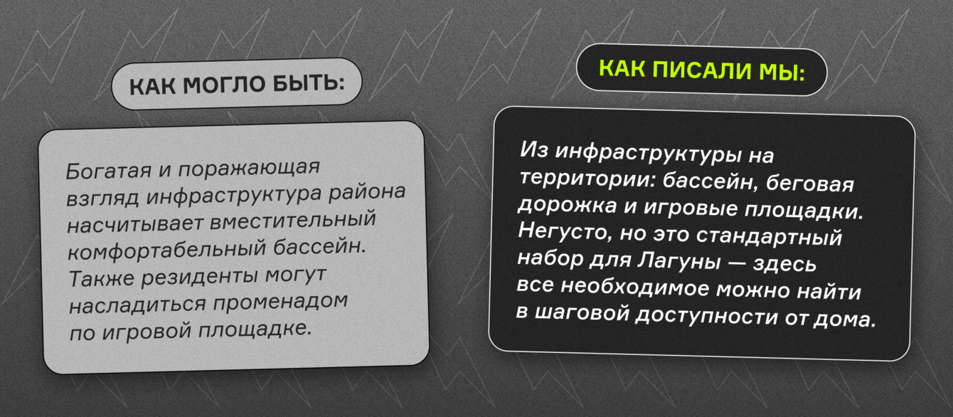 Совместно с клиентом мы создали рабочую систему, при которой команда проекта получала в распоряжение полную, живую и подробную фактуру. Так тексты не приходилось высасывать из пальца, а иллюстрации искать на фотостоках. Все это повысило доверие и репутацию.