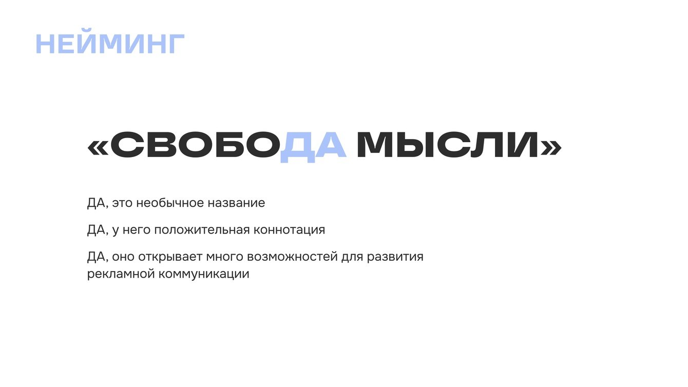 Разработанная бренд-платформа получила одобрение заказчика. «Свобода Мысли» уже активно использует новый брендинг в своей текущей рекламной кампании.