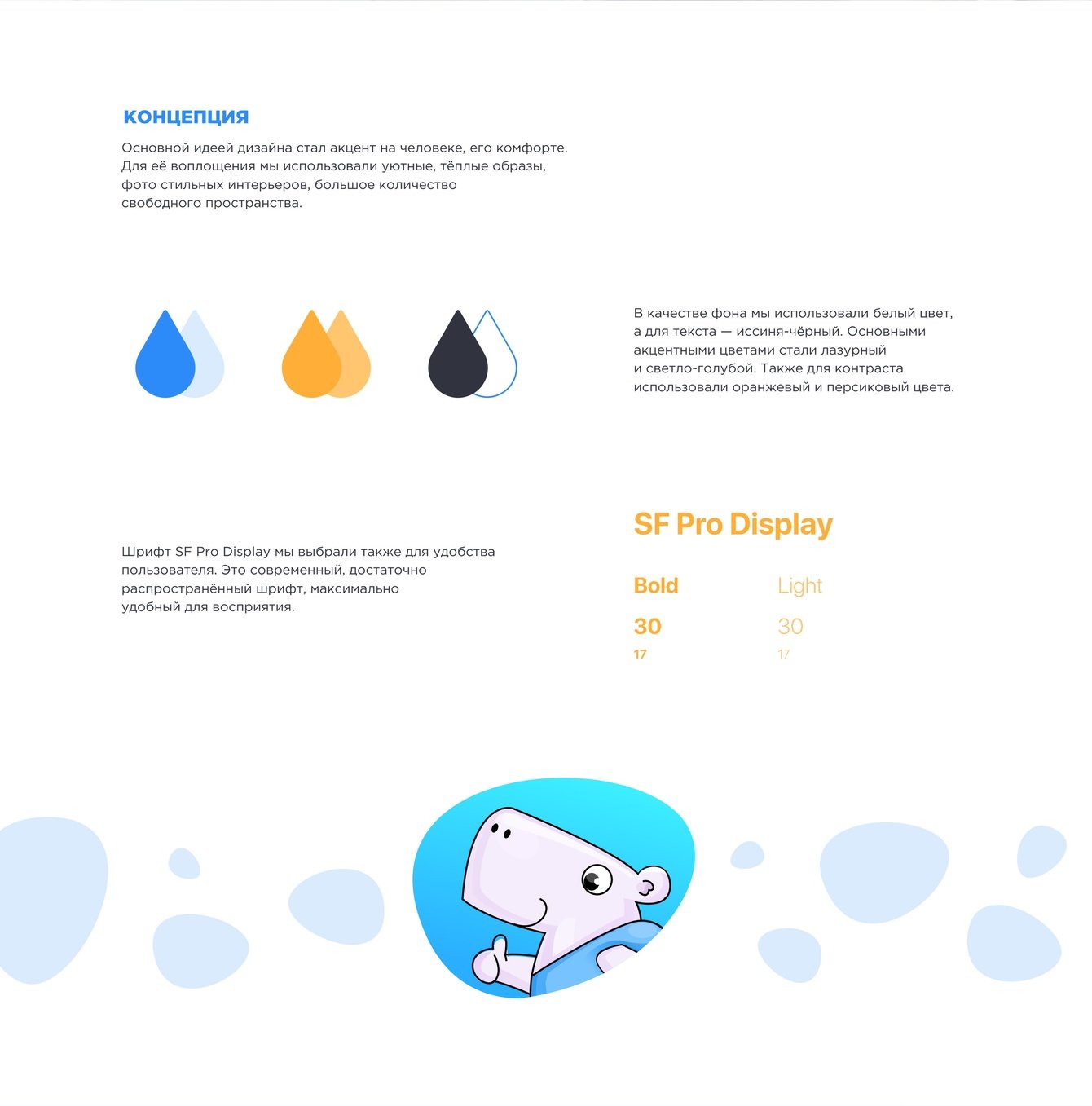 Основной идеей дизайна стал акцент на человеке, его комфорте. Для её воплощения мы использовали уютные, тёплые образы, фото стильных интерьеров, большое количество свободного пространства.