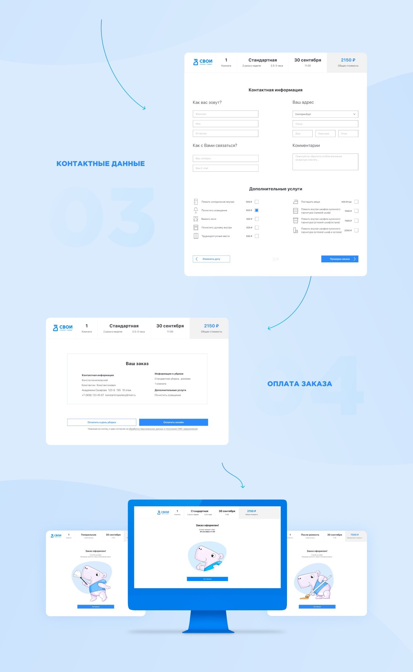 и заказа клининга.