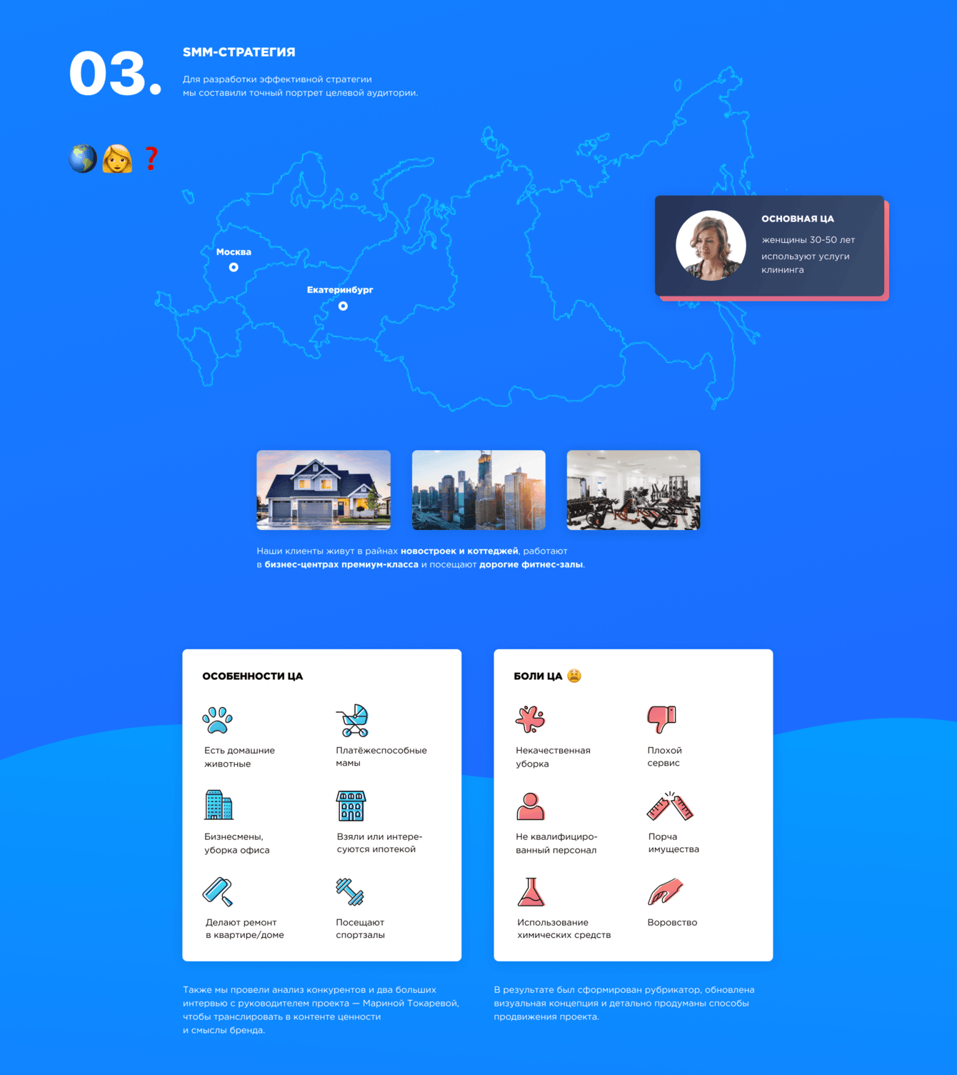 Для разработки эффективной стратегии мы составили точный портрет целевой аудитории. Также мы провели анализ конкурентов и два больших интервью с руководителем проекта — Мариной Токаревой, чтобы транслировать в контенте ценности и смыслы бренда. В результате был сформирован рубрикатор, обновлена визуальная концепция и детально продуманы способы продвижения проекта.