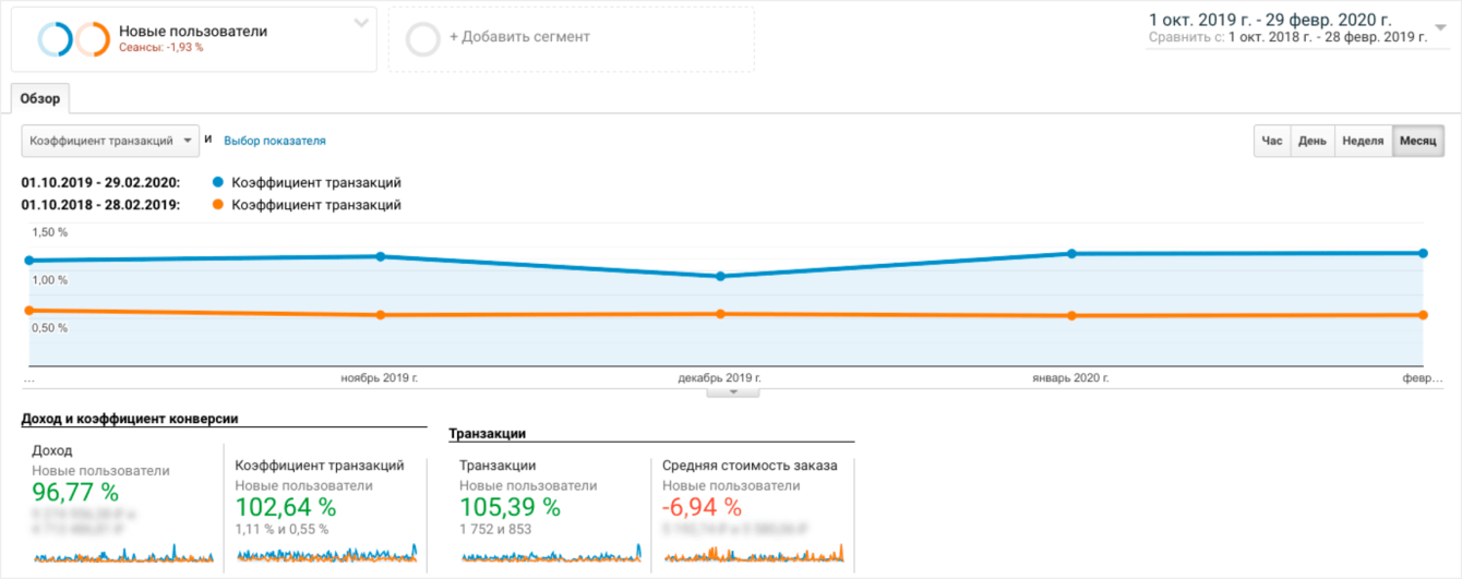 Оценили результаты работы нового сайта интернет-магазина через 5 месяцев после его запуска.