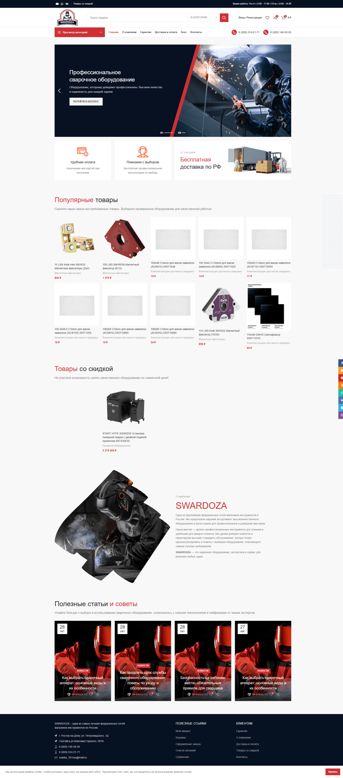 К нам обратились с задачей создать интернет-магазин сварочного оборудования и аксессуаров для них. Мы стремились разработать платформу, которая обеспечит пользователям удобство, простоту поиска и оформления заказа, делая взаимодействие с сайтом максимально комфортным.