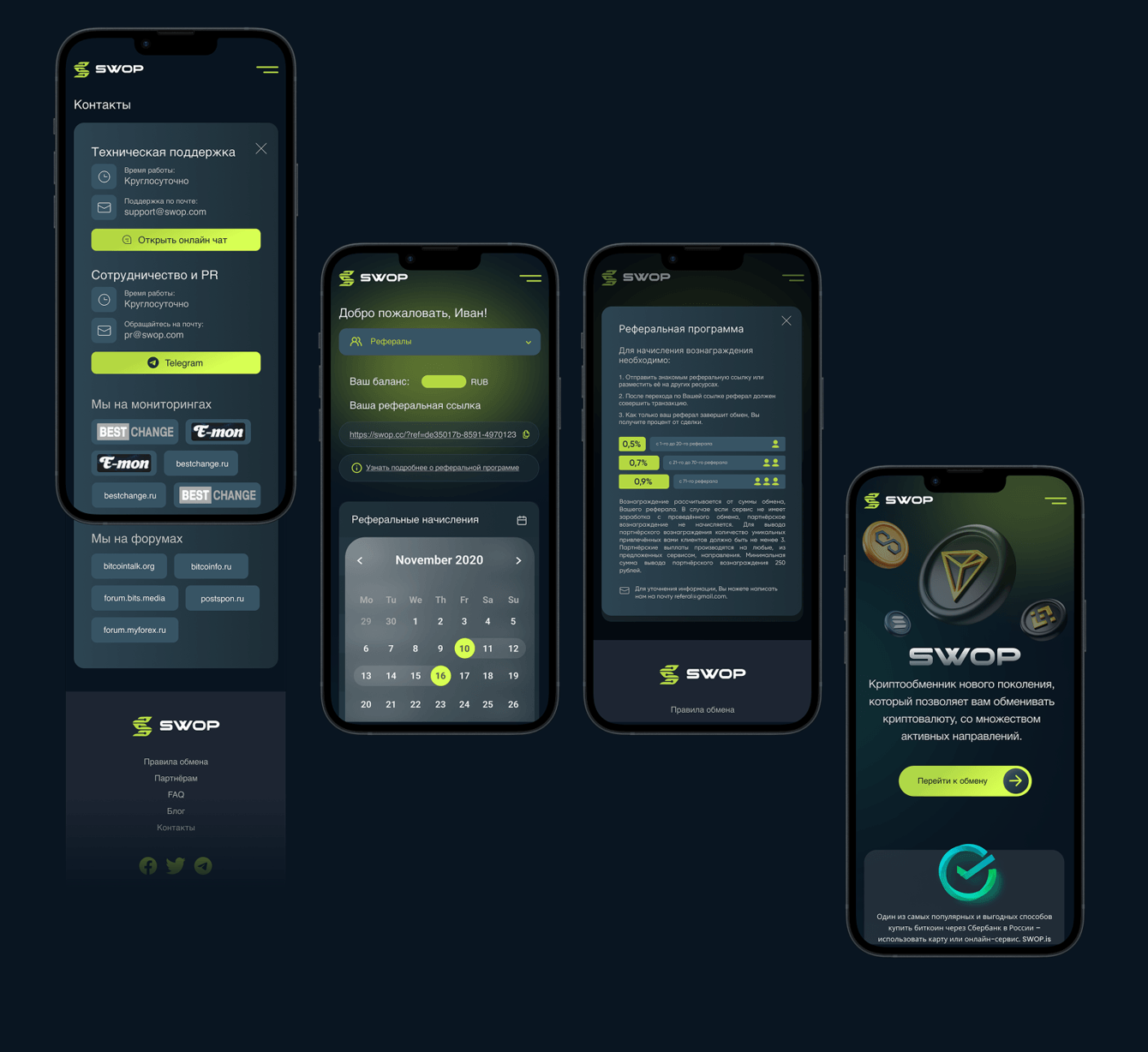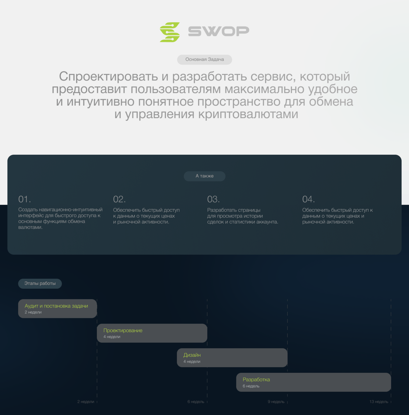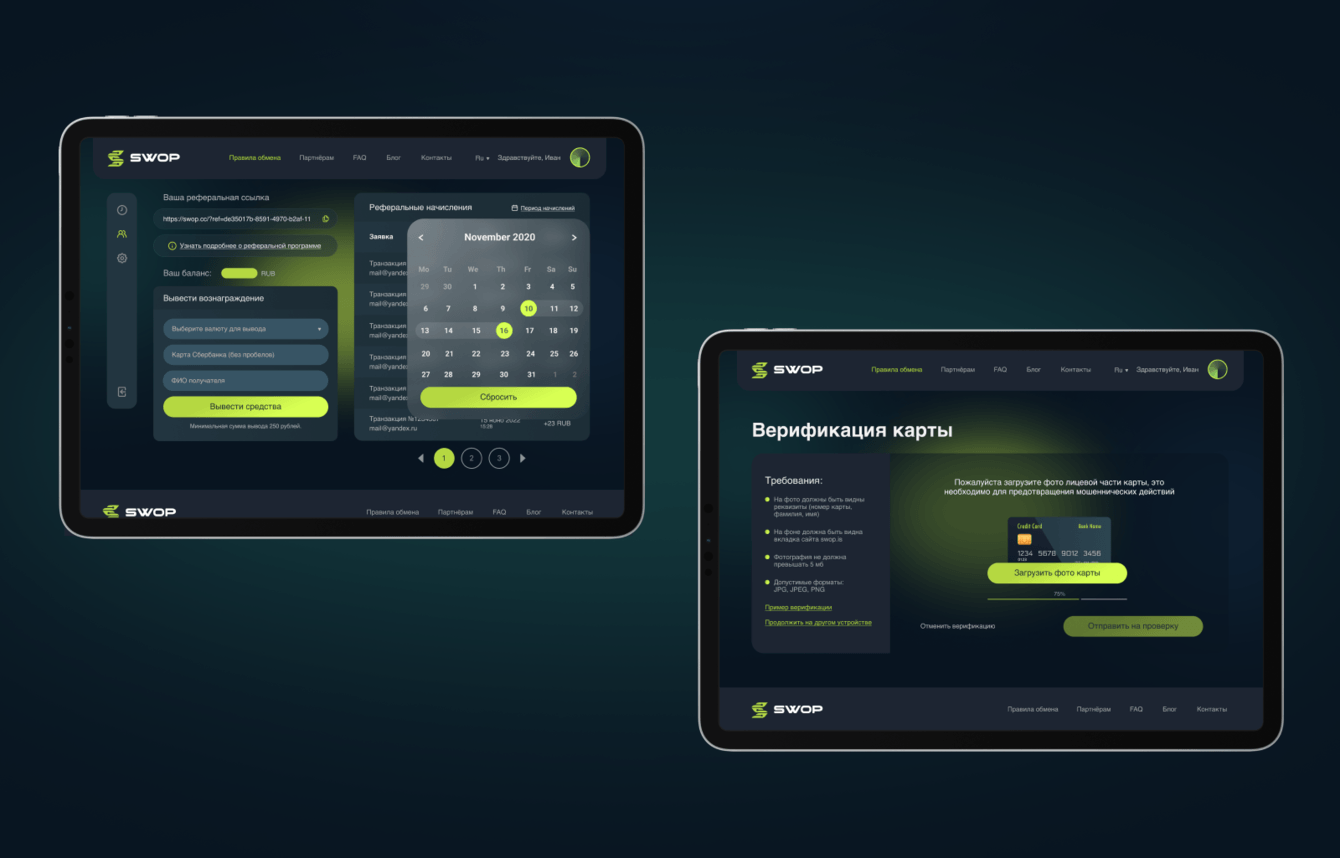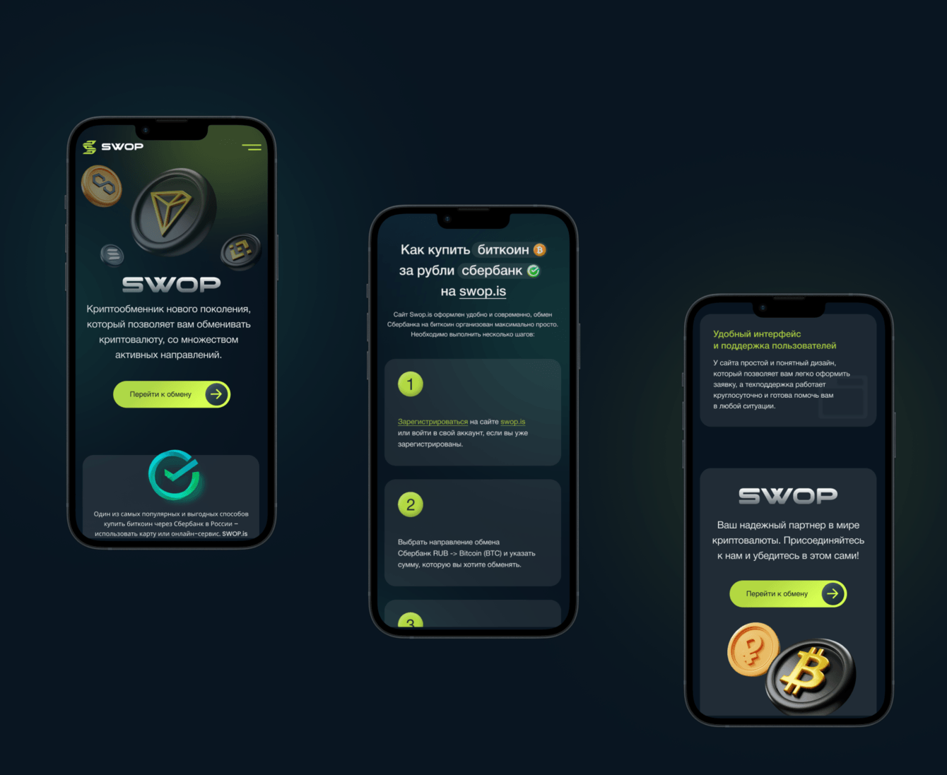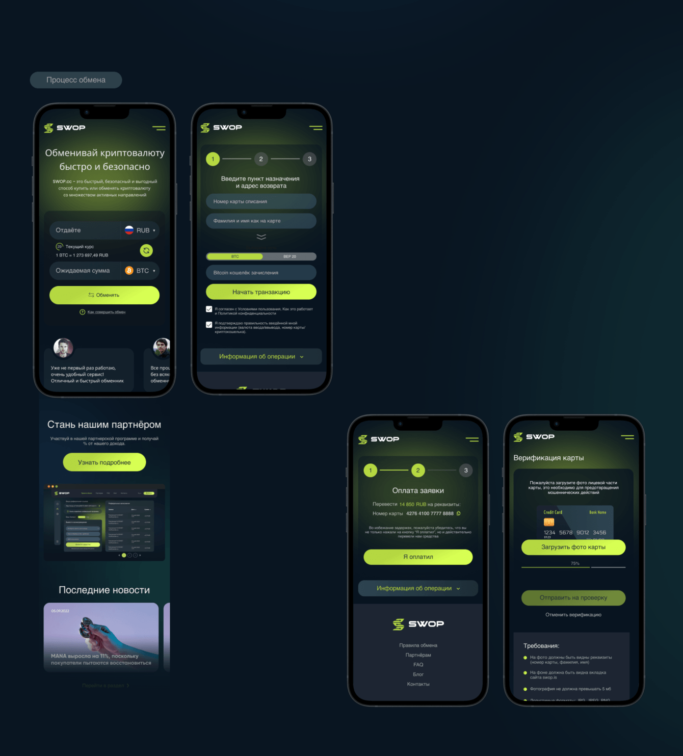 Мы предусмотрели множество пользовательских сценариев, а также особенности взаимодействия с различными видами цифровых активов. Опираясь на ряд ресёрчей, создали навигационно-интуитивный интерфейс для быстрого доступа к основным функциям обмена валютами.