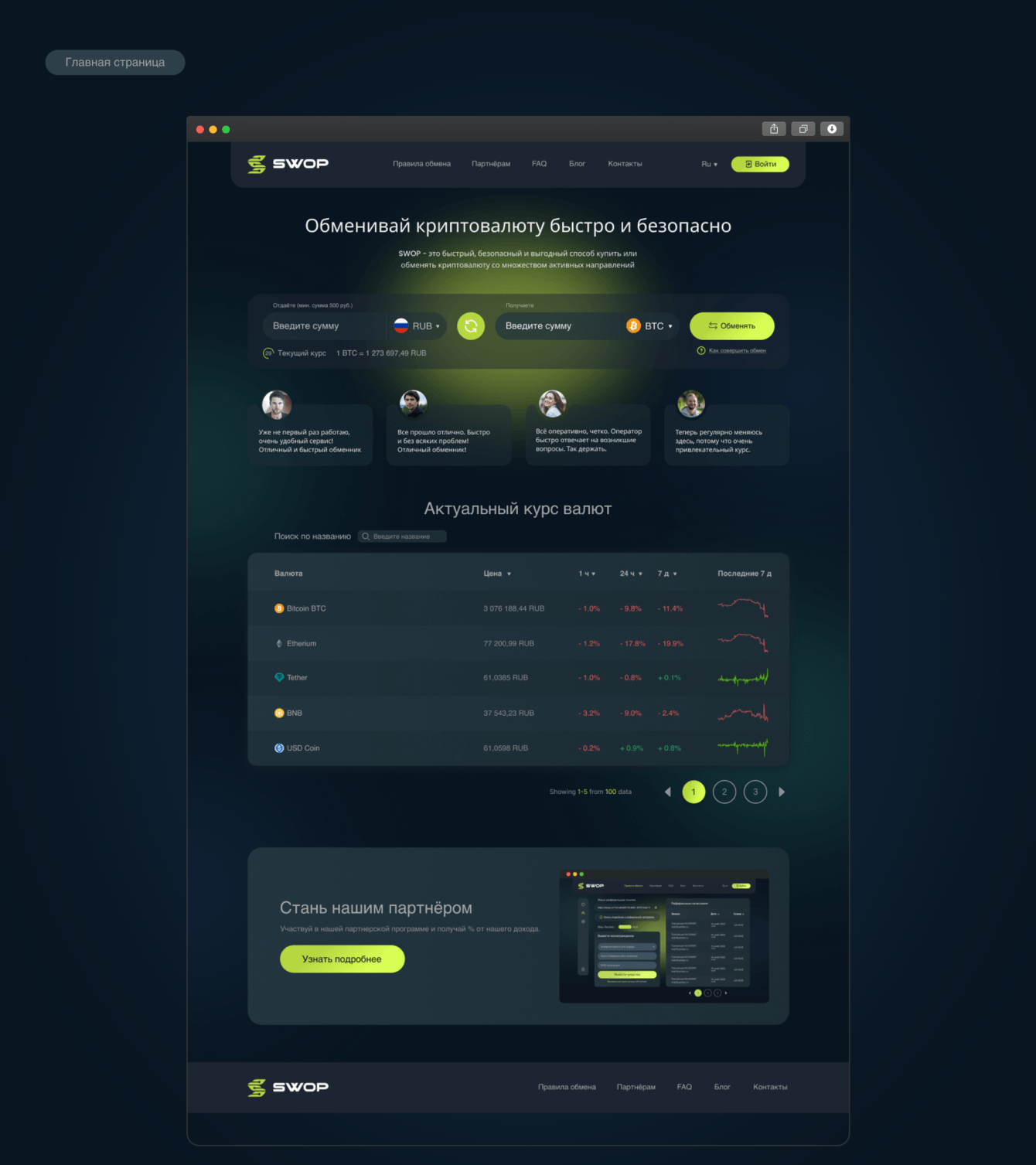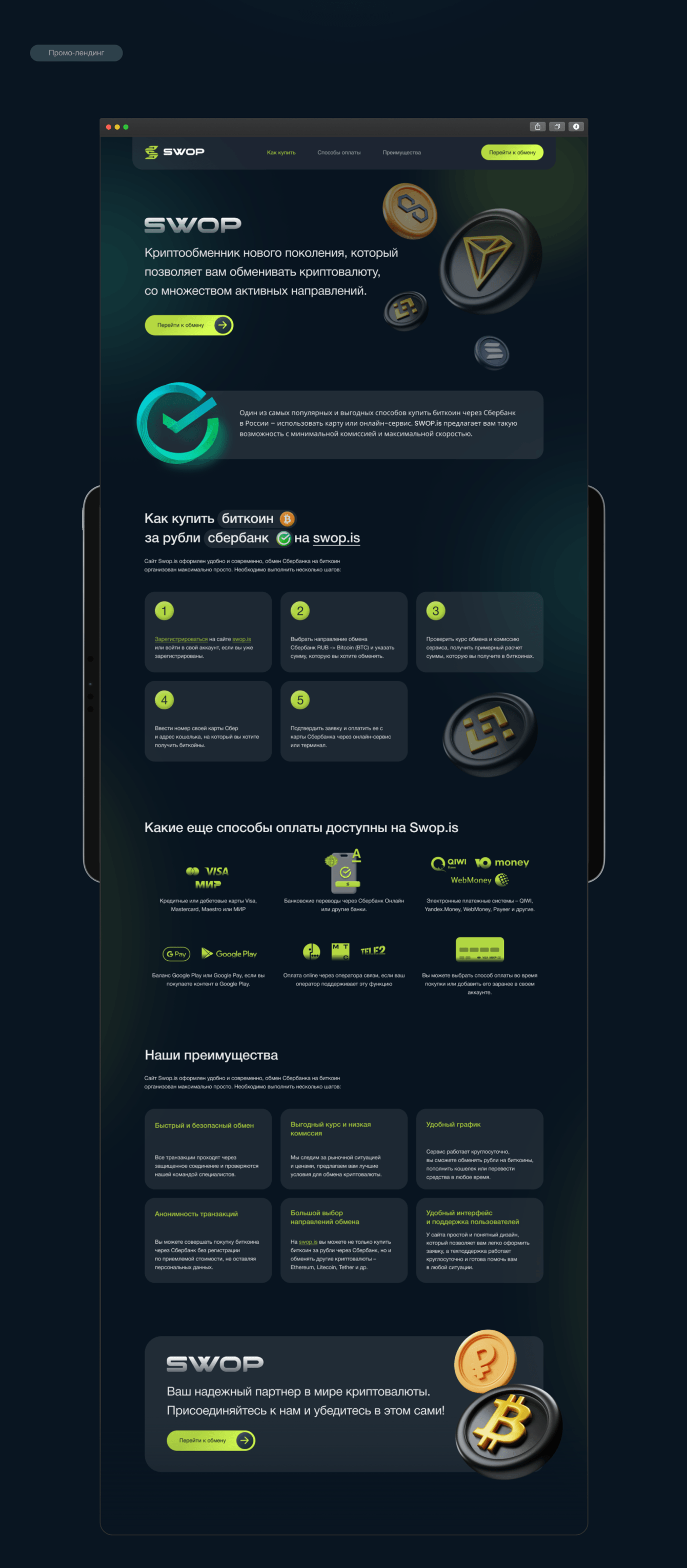 и быстрый двухсторонний обмен цифровых активов на популярные криптовалюты.