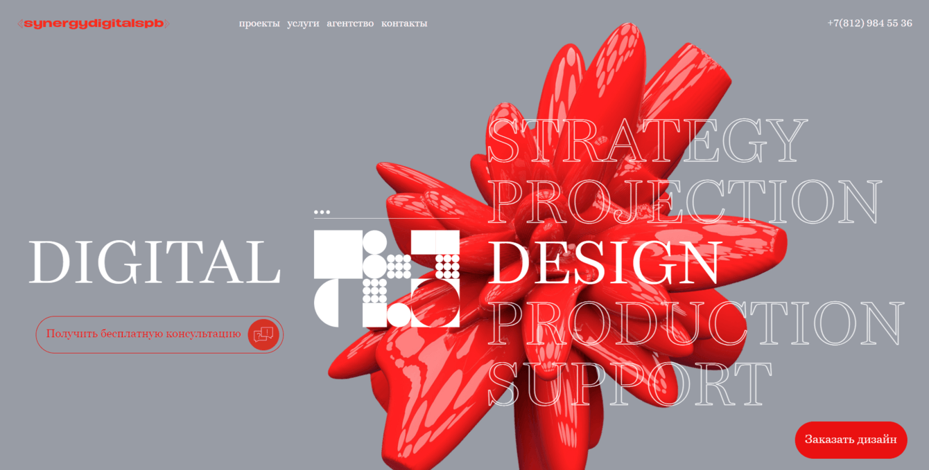 Сайт разработан под диджитал агентство в минималистичном стиле и акцентными деталями, придерживаясь брендинг компании.