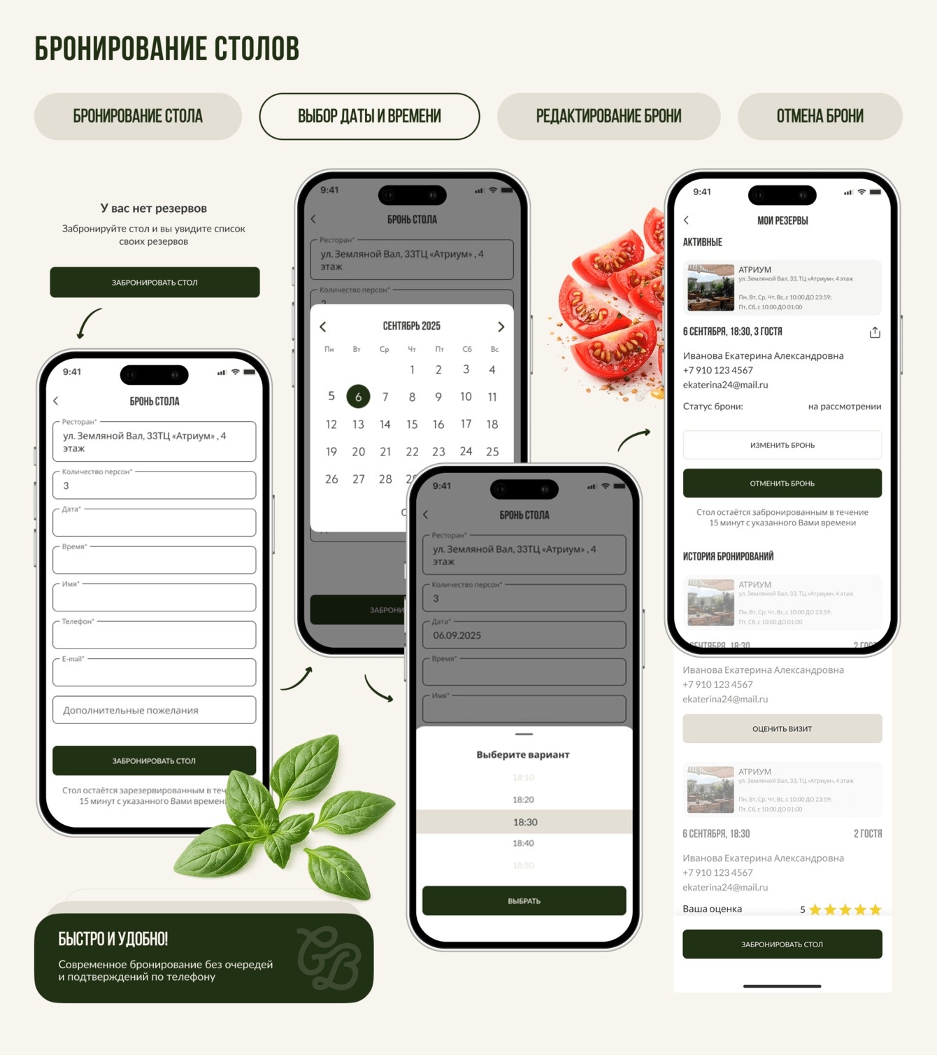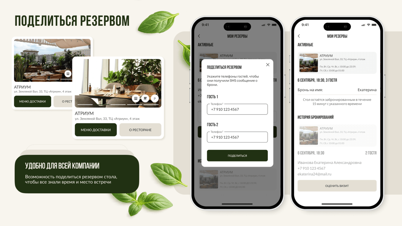 ✅ Уникальные фичи: печатные меню по ресторанам, шеринг бронирований, корзина совмещённая с оформлением