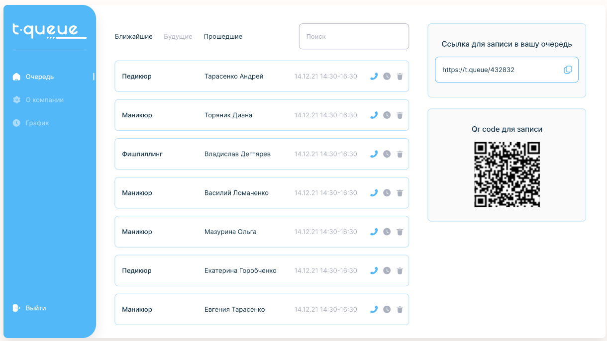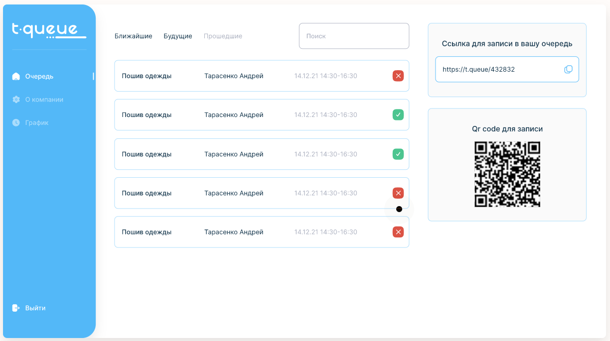t-queue - приложение для создания электронной очереди. Пользователи могут создать запись к себе учитывая все ньюансы и особенности своей работы всего за несколько минут.
