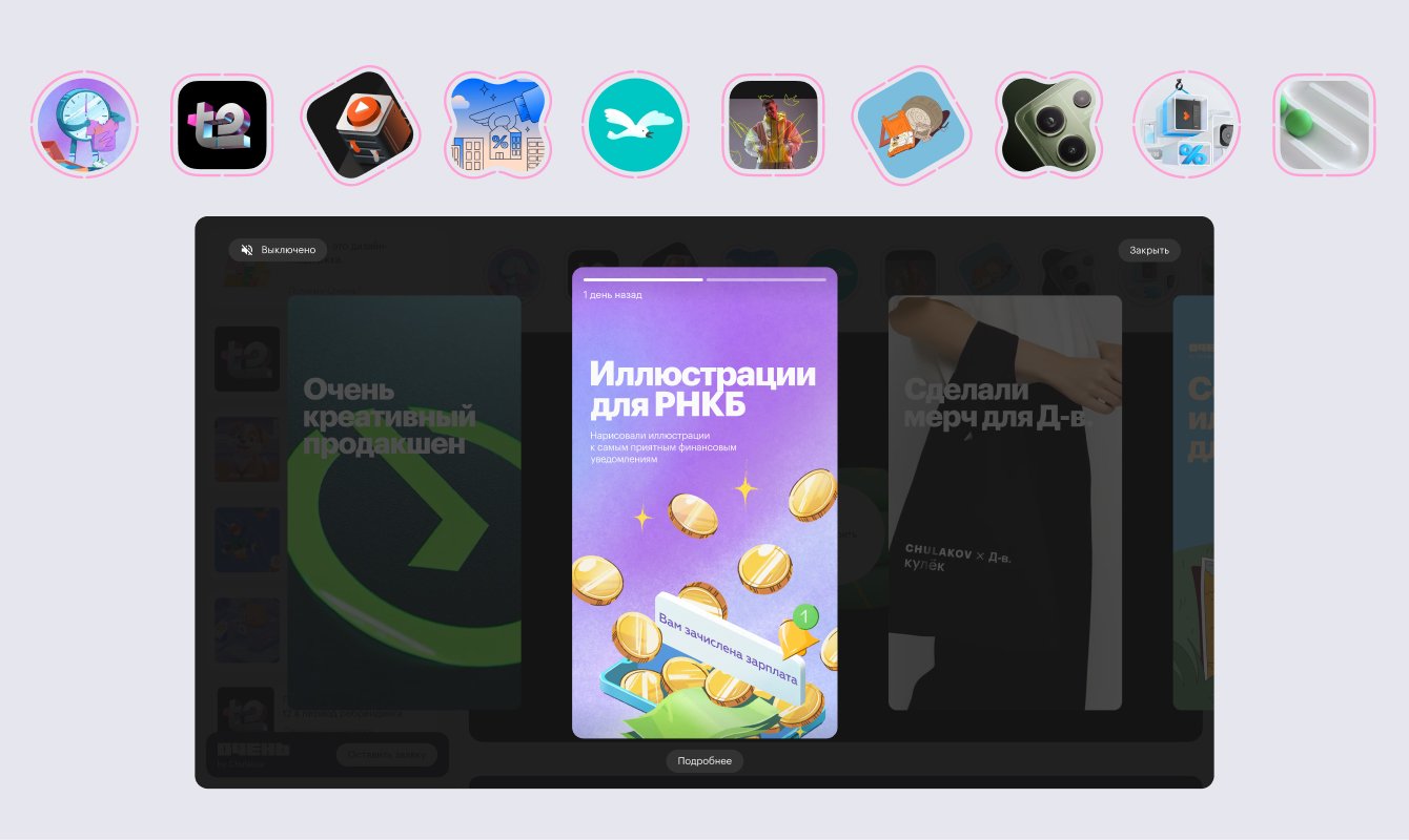 Проекты команды легко заметить. Сторисы на сайте позволяют быстро просмотреть свежие новости и проекты, не отвлекаясь от основного контента, — важная информация всегда под рукой.