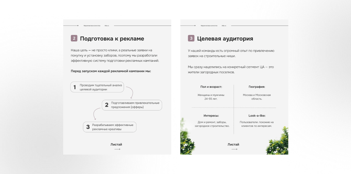 Пол и возраст: женщины и мужчины 24-55 лет. Это возрастная группа, наиболее платежеспособная и активная в сфере строительства и обустройства загородной недвижимости.