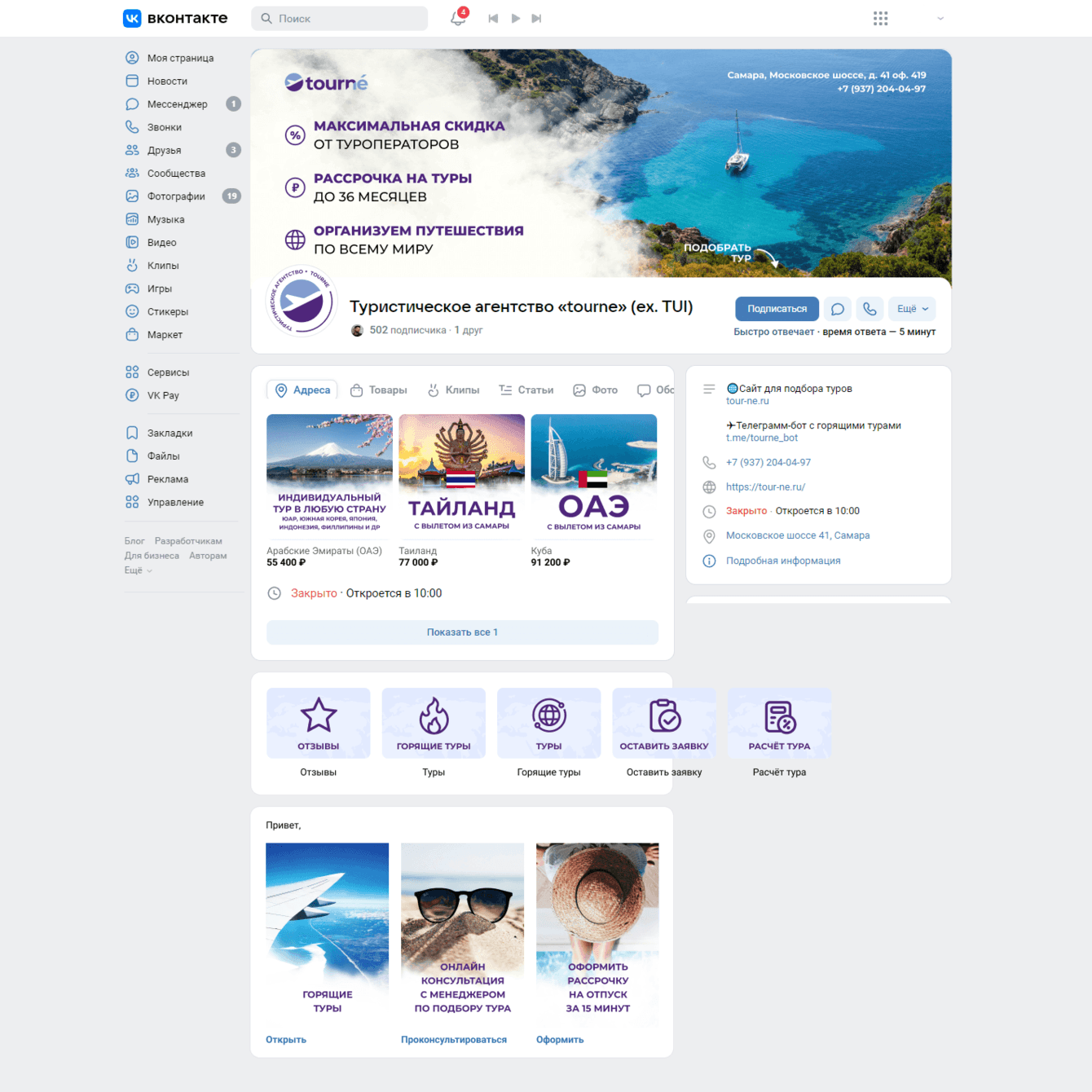 Обложка для ПК и мобильной версии. Дизайн выполнялся без технического задания и референсов, клиент дал полную свободу действий. В прежнем варианте обложка ВК представляла собой стоковое фото с фирменным логотипом клиента. Нашей задачей было сделать яркую привлекательную обложку, на которой будут размещены основные УТП (уникальные торговые предложения) клиента. Тексты в дизайне для ВК играют огромную роль, поэтому это было особенно важно.