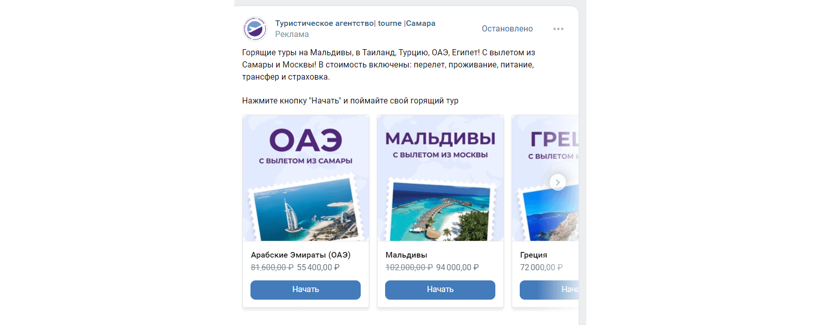Цель рекламной кампании — привлечь как можно больше потенциальных клиентов, которых в дальнейшем можно прогревать и продавать им туры.