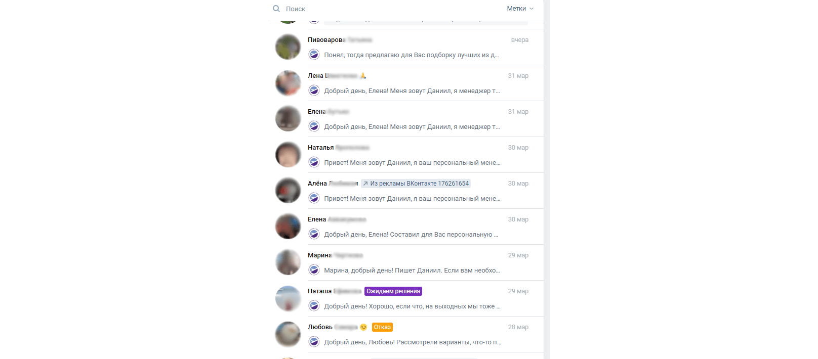 3. В процессе работы стало ясно, что менеджер по продажам со стороны клиента не всегда удачно строит диалог в переписке, что могло спугнуть покупателей. На это повлиять мы, к сожалению, не могли.