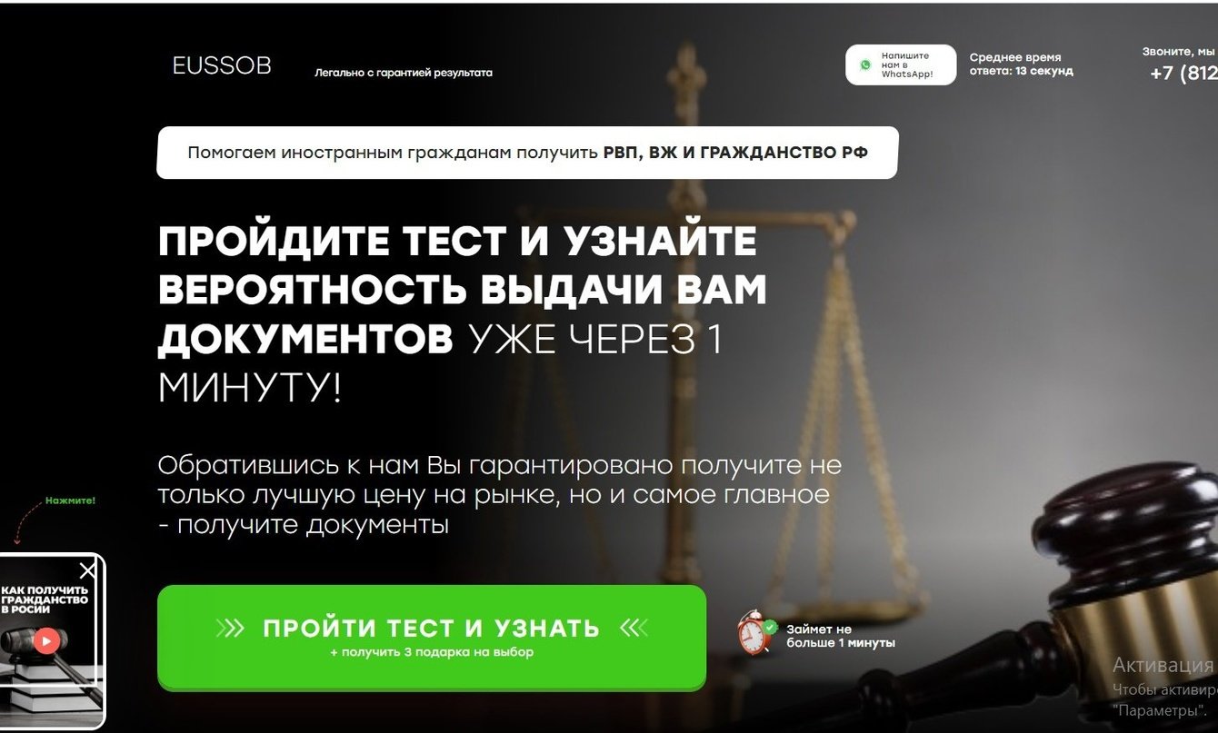 Главная цель — получение заявок на услугу «Вид на жительство», «Получение гражданства» и др.