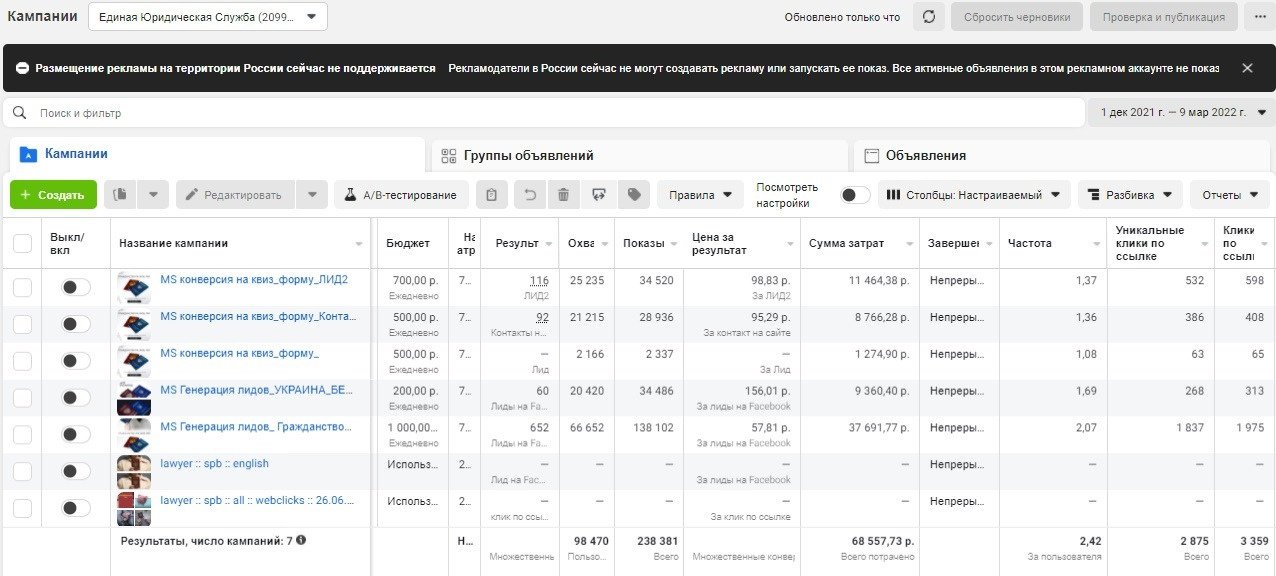 Юридические услуги очень часто мелькают у нас перед глазами в контекстной рекламе. Нам удалось добиться отличных результатов и в таргете.