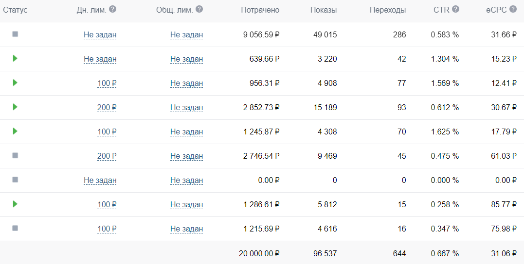 На начало запуска рекламной кампании мы создали порядка 60 различных объявлений, чтобы максимально хорошо протестировать офферы и оставить только 2 −3 самых лучших и эффективных.
