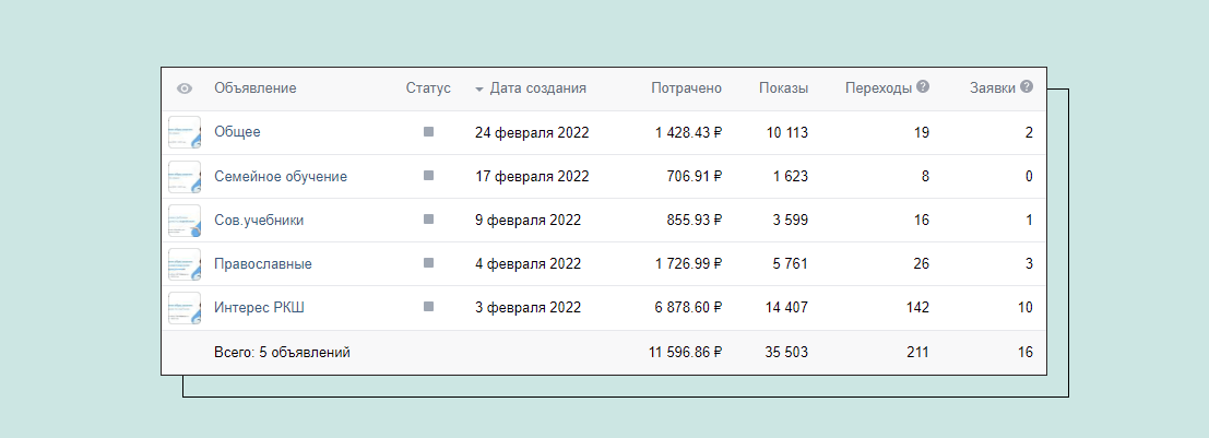 Неэффективные рекламные объявления сразу отключались. Для оптимизации бюджета нужно постоянно наблюдать за качеством "открутки" рекламы