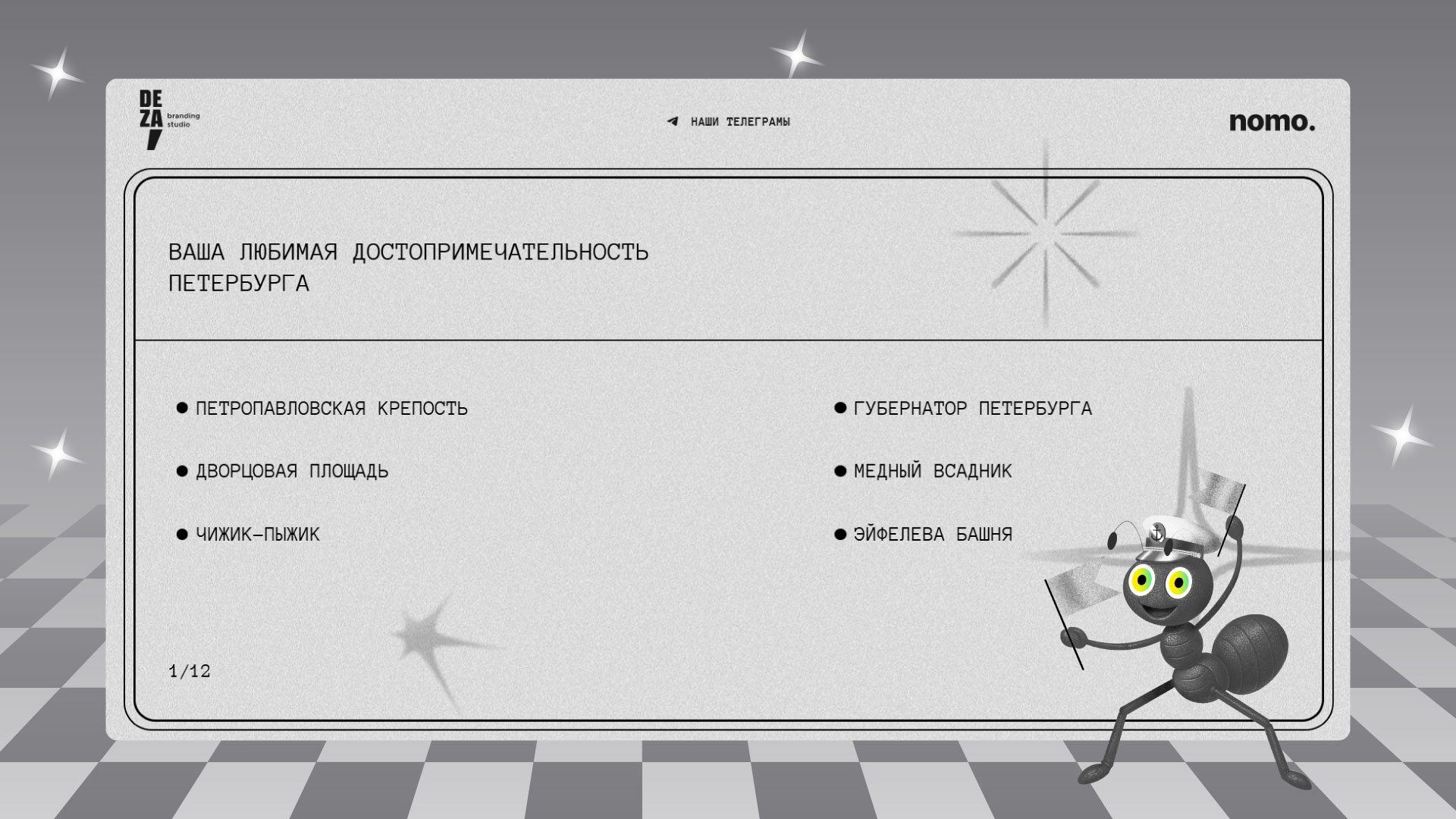 Сам онлайн-тест мы решили как подборку вопросов в концепции и стиле всего проекта: ироничных, с абсурдинкой, тематически и стереотипически петербургских. Без однозначно верных ответов. Мы спрашивали, как правильно — «сосули» или «сосали», зашла или отожгла корюшка, что снится крейсеру «Аврора» и тому подобное.