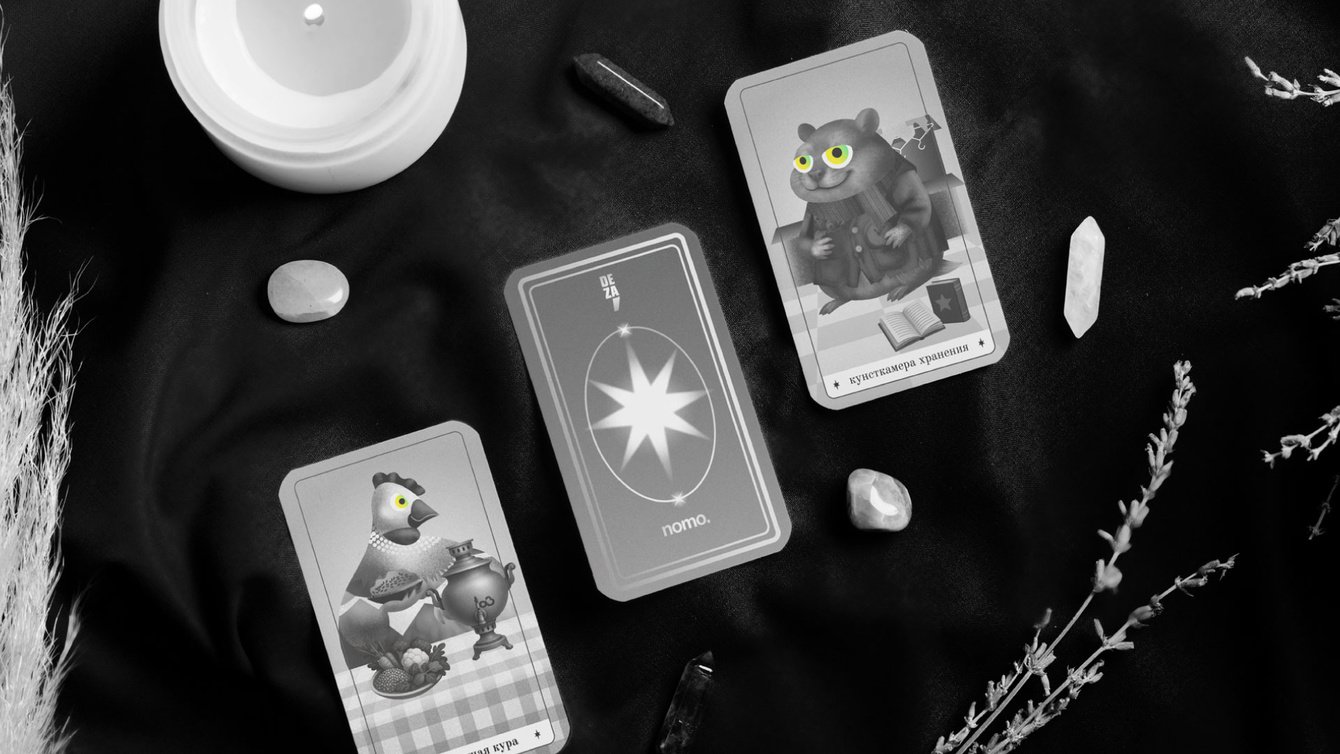 Загадочный мистический вайб Таротипов развивается и в визуале — характерно петербургском, сером и подчеркнуто депрессивном. Но с яркой градиентной ноткой — она используется в качестве акцента, придавая стилю немного дерзости и уместного для картежной темы азартного настроения.
