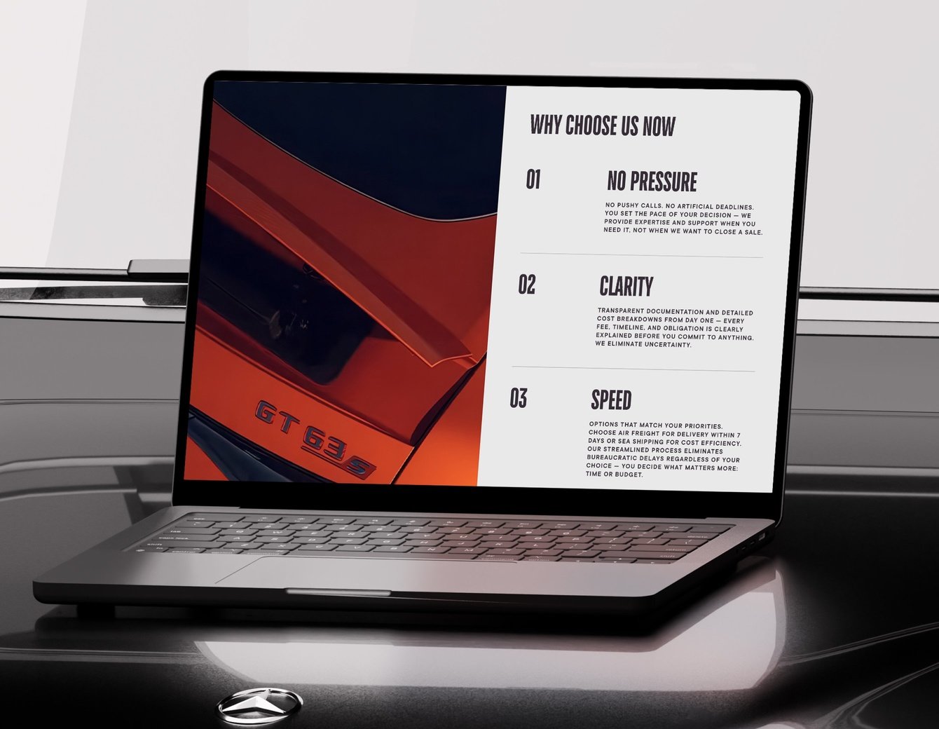 ✔️Чтобы Tasty Motors мог уверенно выделиться на рынке ОАЭ, нам нужно было создать сайт, который не только решает функциональные задачи, но и формирует яркий и узнаваемый образ бренда. Сайт должен отвечать ожиданиям премиальной аудитории, для которой важны статус, индивидуальность и качество визуальной подачи.