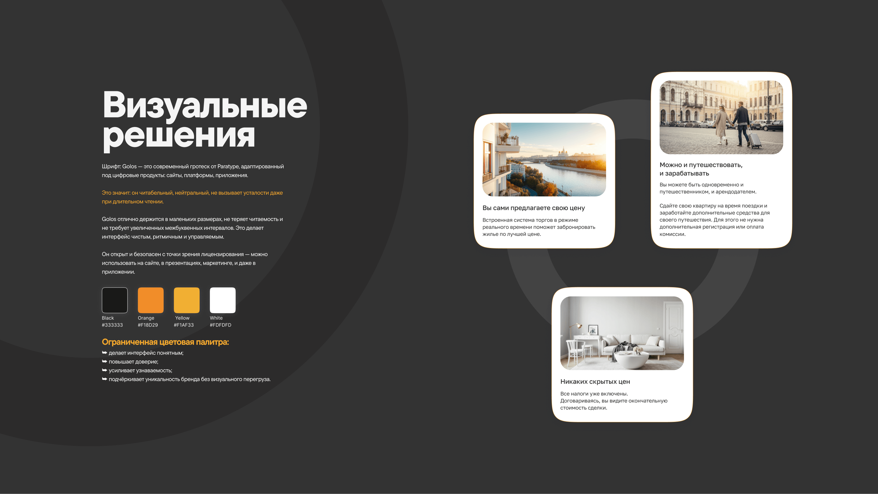 В дополнение к брендовым цветам подобрали шрифт Golos.