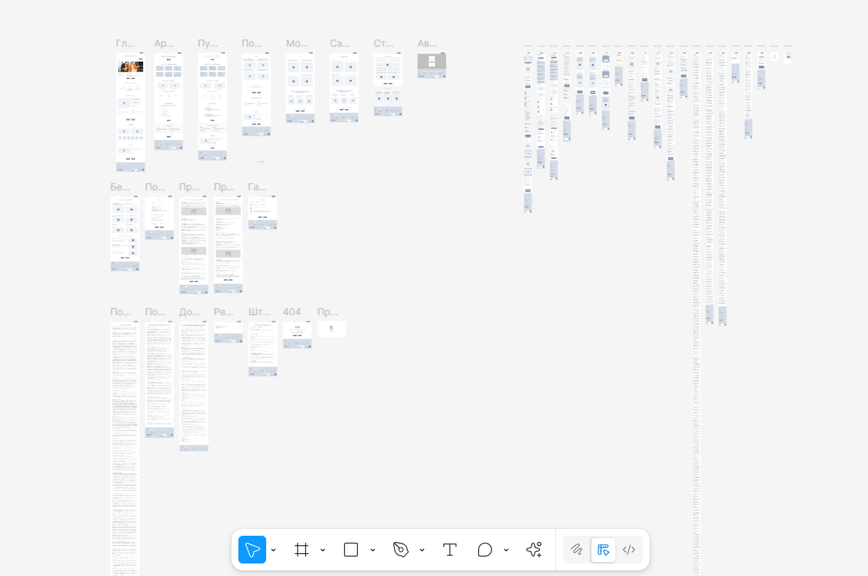 Собрав паспорт проекта, матрицу референсов и результаты аналитики, перешли к проектированию новой архитектуры. Создали 41 вайрфрейм, включая основные страницы, состояния ошибок, прелоудер и технические экраны. Каждый экран адаптировали под мобильные устройства.