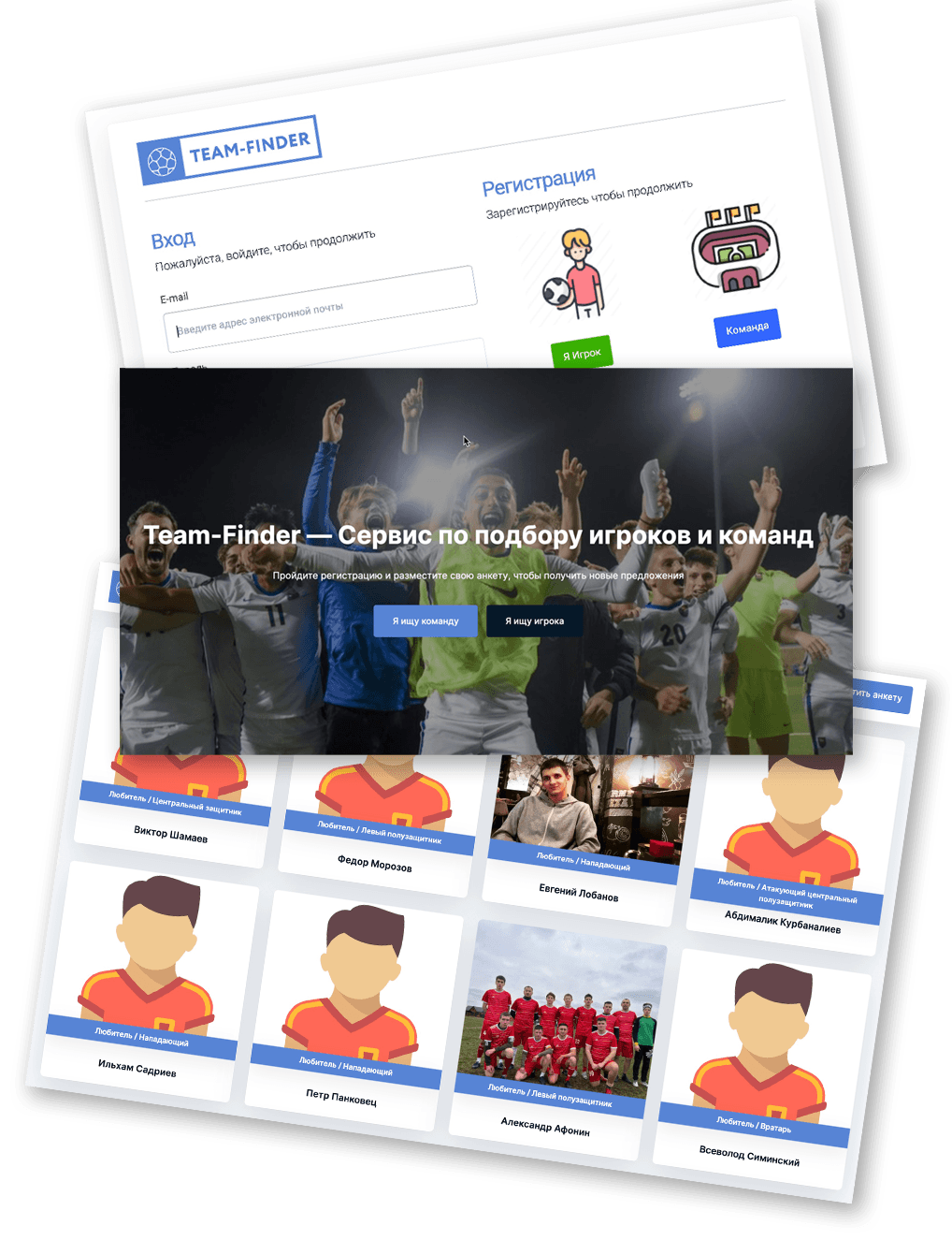 Сервис team-finder.ru был запущен в 2019 году группой энтузиастов футбола, которые хотели облегчить людям занятие любимым видом спорта. С помощью сервиса team-finder.ru игроки в футбол любого уровня могут искать команду, а команды — игроков.