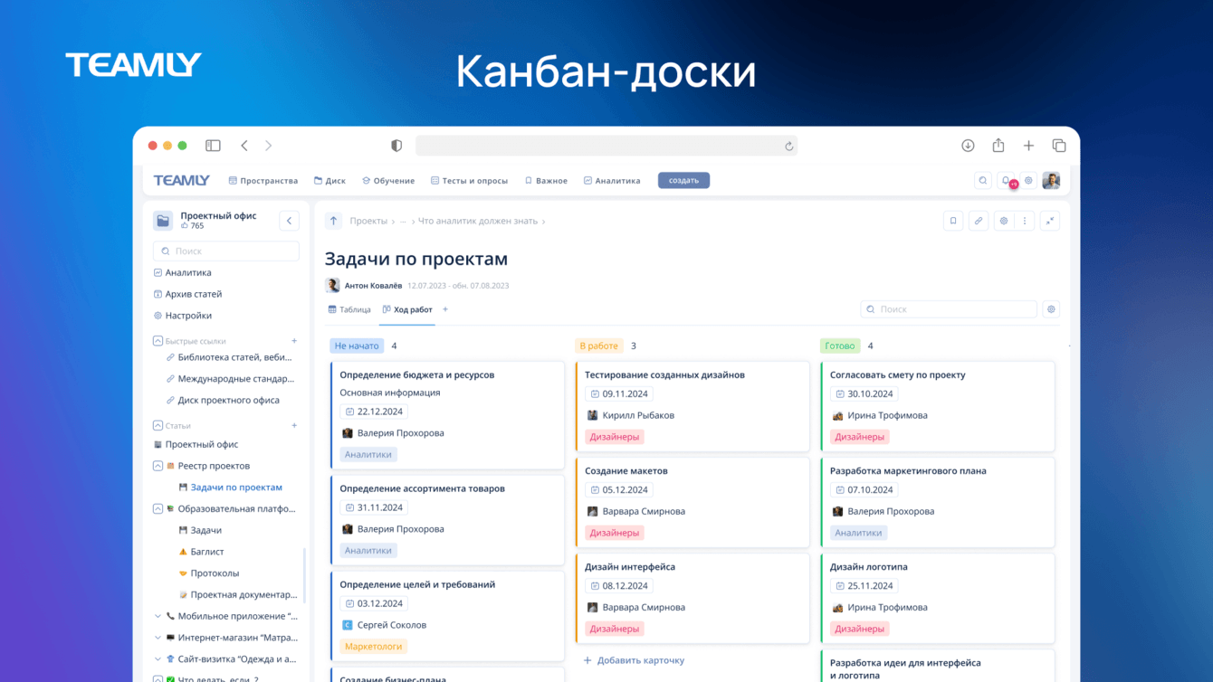 TEAMLY - платформа для совместной работы и управления знаниями, документами, задачами. Продукт предоставляет все необходимые возможности для организации и управления информацией внутри различных команд, делая его идеальным инструментом для эффективного ведения бизнеса.