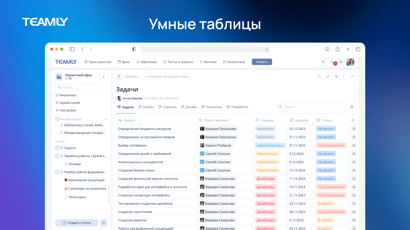 Умные таблицы помогают выстраивать процессы и управлять проектами, документами и задачами. Это гибкий инструмент, который позволяет систематизировать данные и работать с ними в разных отображениях.