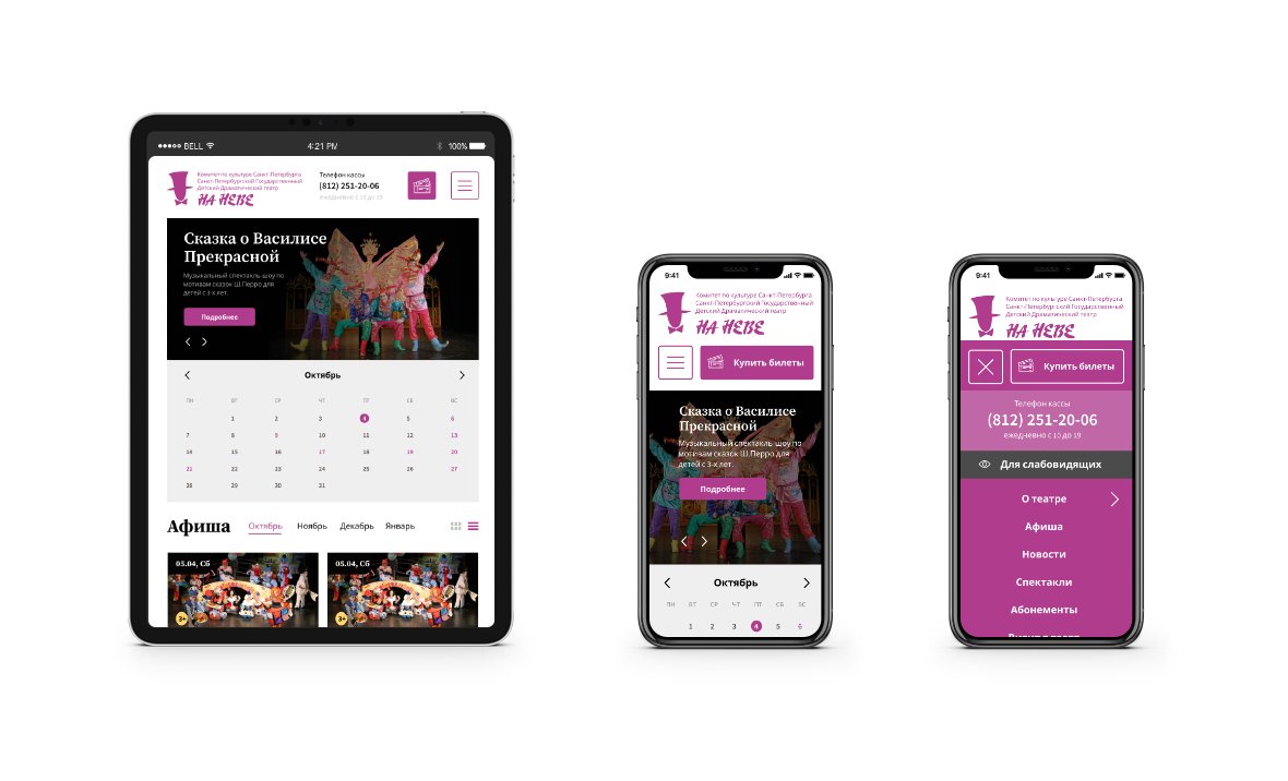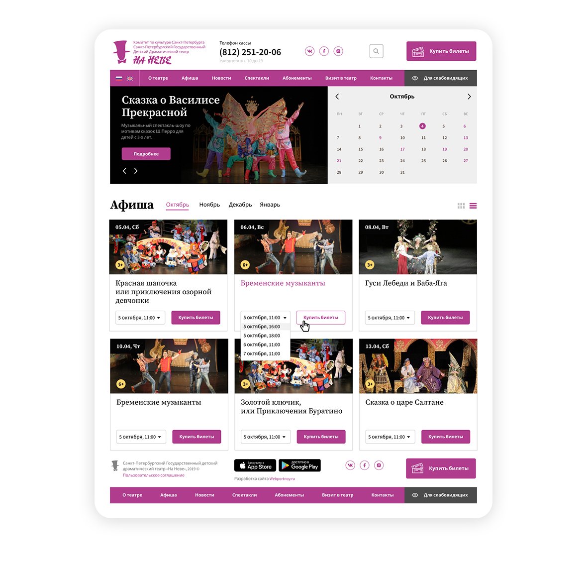 Разработать сайт детского государственного театра На Неве. Создать удобную систему заказа билетов и абонементов.