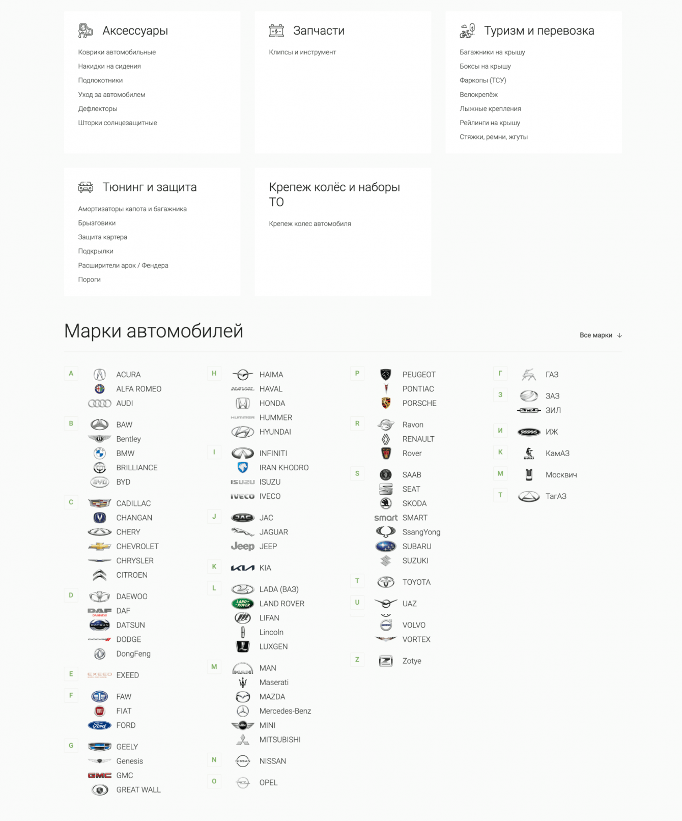 Преобразование написания марок и моделей в мета-тегах товара на русский язык. Description на странице товара включает в себя наименование марок и моделей на русском языке для лучшей индексации поисковыми системами. Написание марок и моделей на русском языке в description через справочник highload-блока.