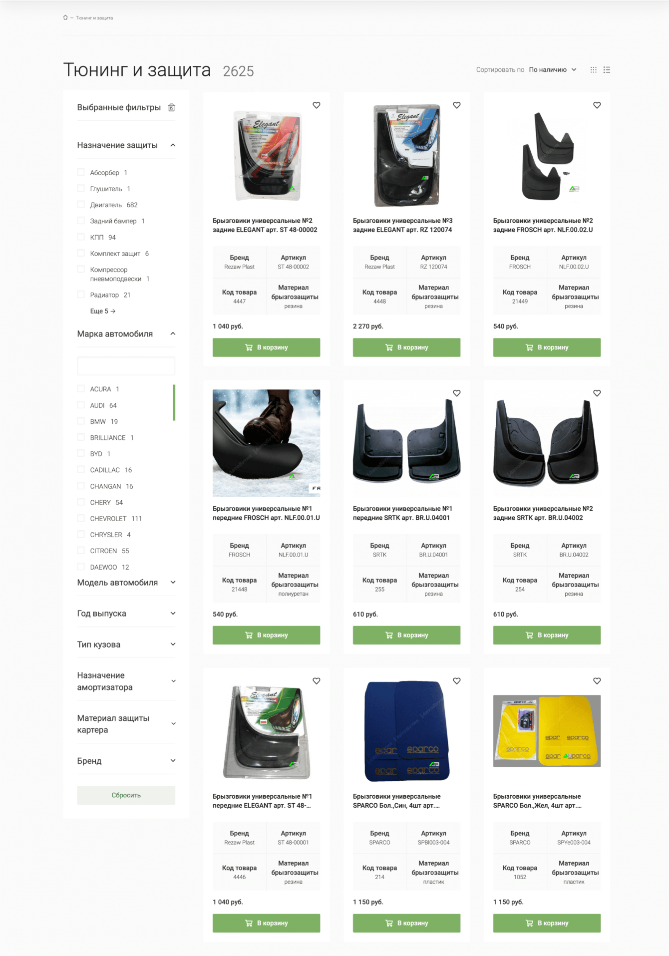 На сайте разработали функционал подбора запчастей по параметрам, настроили выгрузку номенклатуры с привязкой справочника.