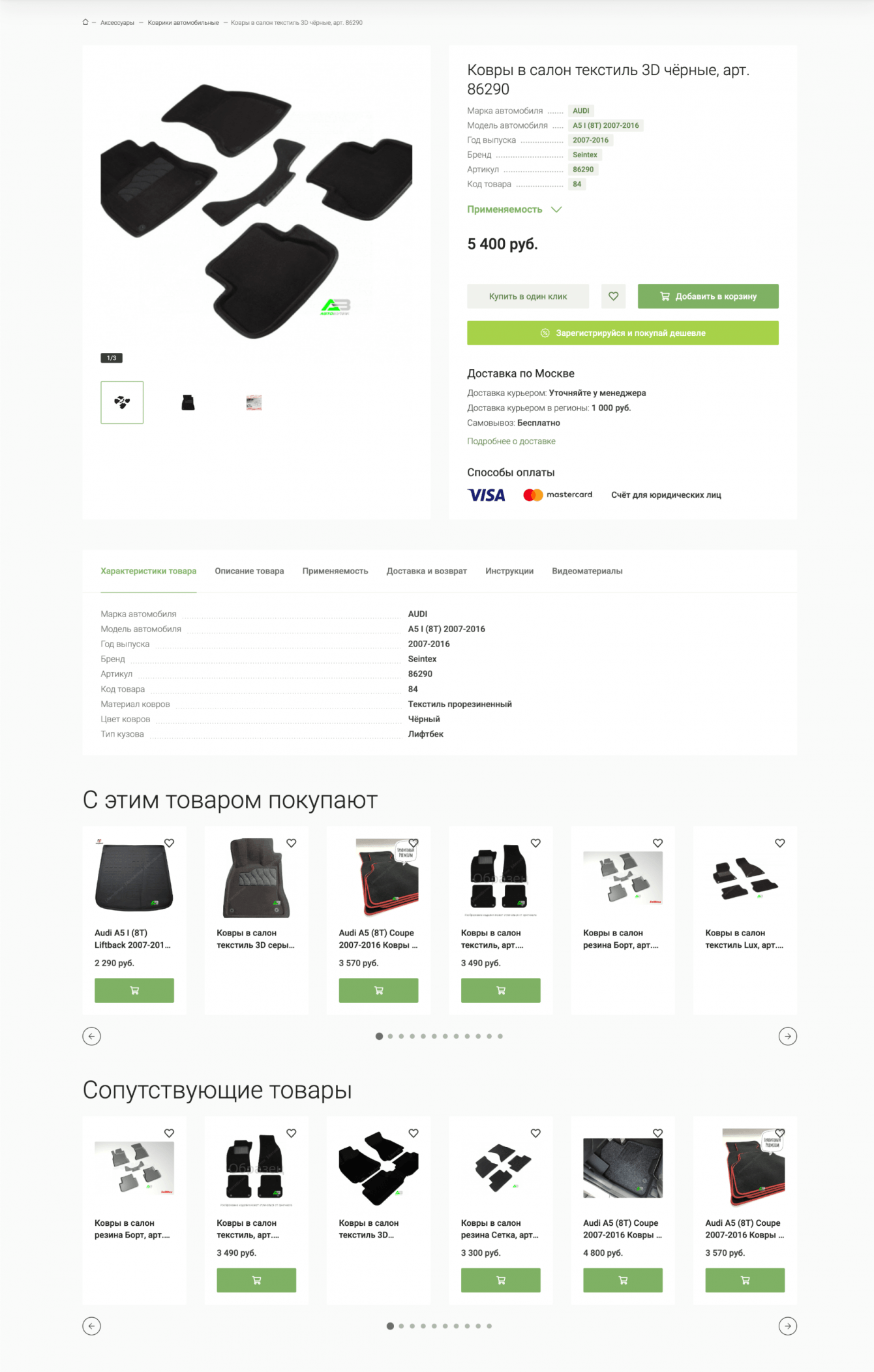 Некоторая продукция производителей, которая представлена в интернет-магазине подходит к нескольким моделям авто. Для этого был разработан функционал, который в административной части товара “собирает” из множества свойств комбинацию “марка, модель, год” для дальнейшего вывода в блоке применяемость для информирования пользователей.