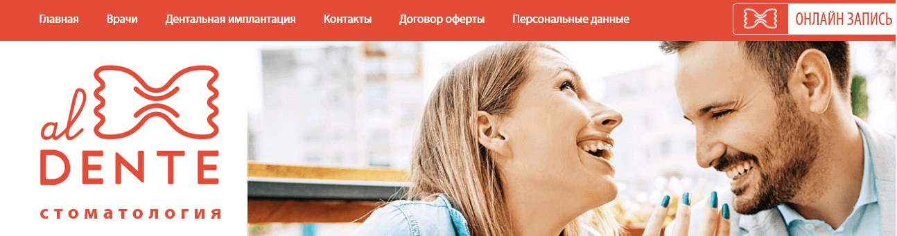 Стоматологическая клиника al Dente предоставляет услуги по лечению зубов, установке протезов и проведению операций. Пациентами клиники являются как взрослые, так и дети. У компании есть веб-сайт, где представлена основная информация о клинике, её услугах и форме записи на приём к специалистам. Также существует страница об al Dente на стороннем ресурсе (в рамках партнёрства).