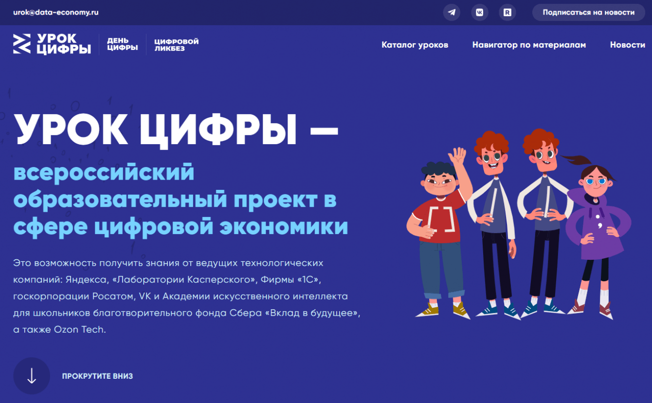 Урок цифры - всероссийский образовательный проект в сфере цифровой экономики. Организаторами проекта выступают Министерство просвещения, Минцифры и АНО "Цифровая Экономика". В партнерстве с ведущими технологическими компаниями Яндекс, Сбер, VK.