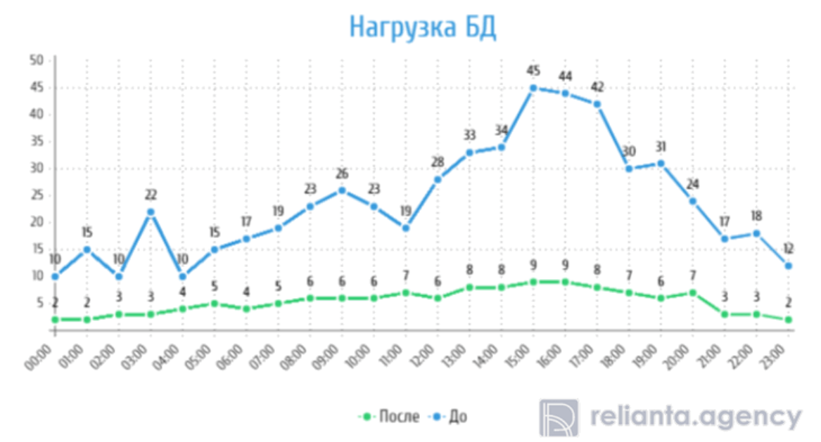 2. Уменьшение количества запросов к базе данных привело к снижению нагрузки на сервер базы данных, что повысило стабильность системы.