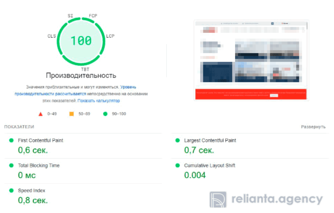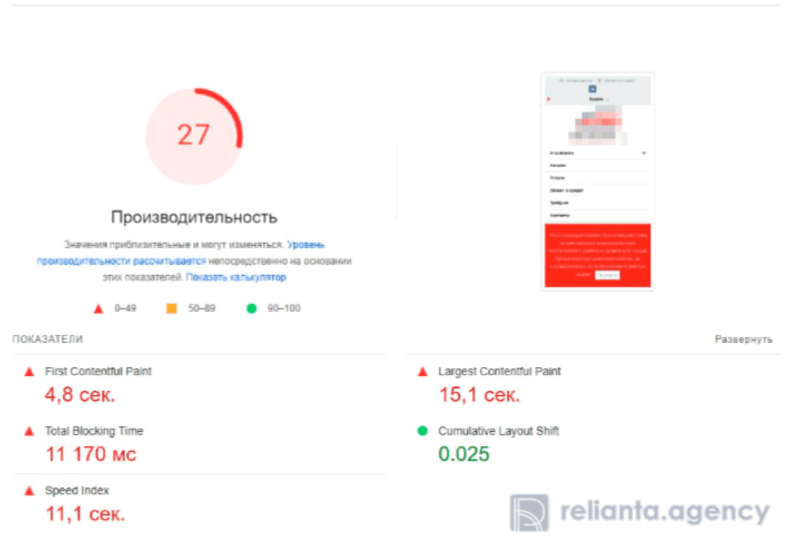 По данным Google PageSpeed Insights производительность сайта выросла с 27 до 100.