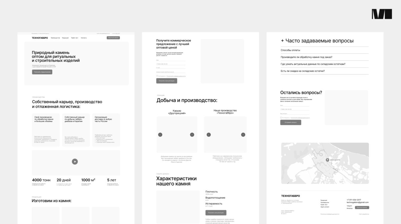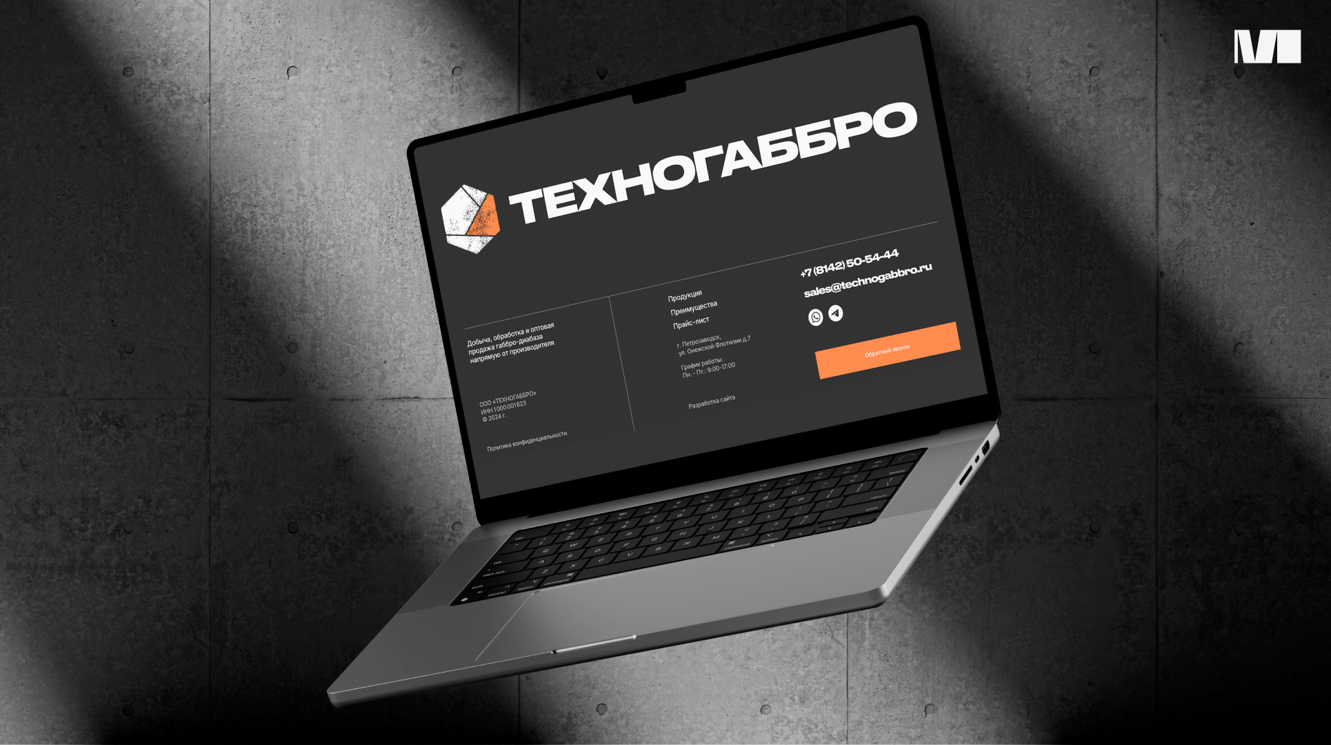— собрали функциональный дизайн с акцентом на доверие и продукцию. Выделили «Техногаббро» за счет динамики на 1 экране и современного дизайна.