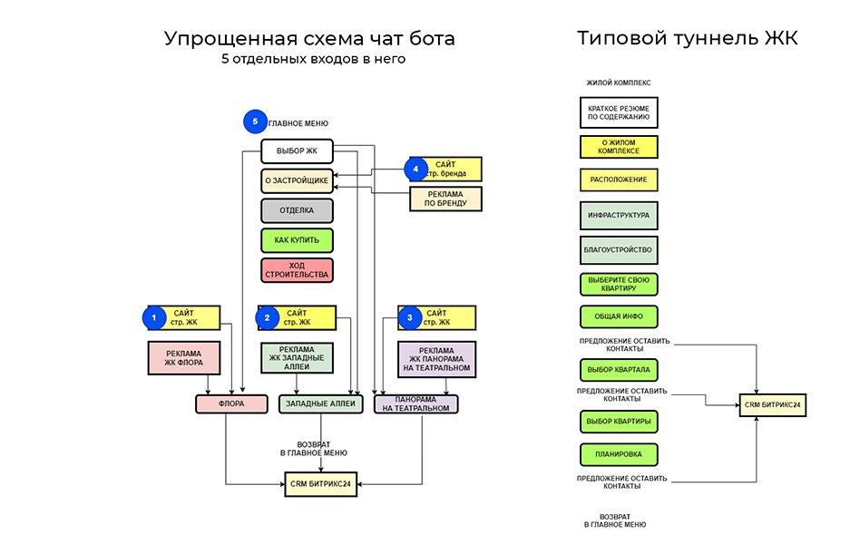 - Различные точки входа для контекстной рекламы: старт чат-бота с конкретного ЖК.