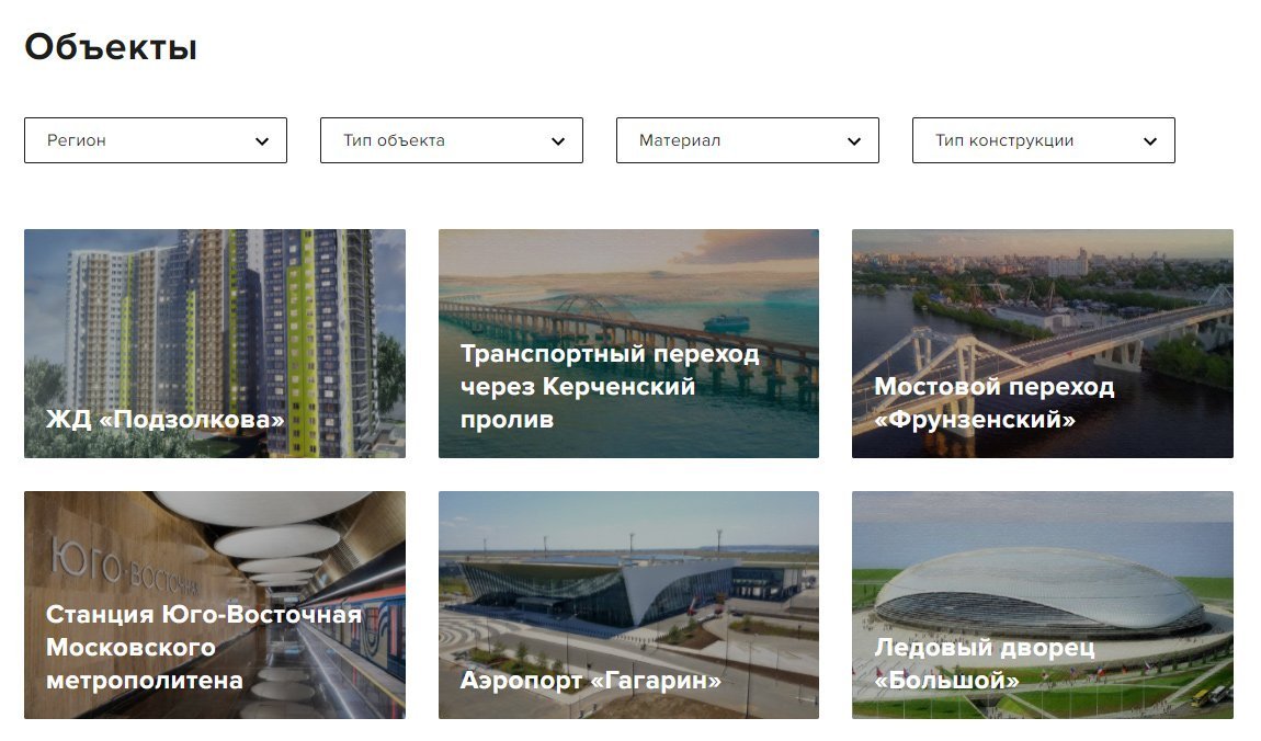 Реализован раздел с выполненными проектами с системой фильтрации. У каждого проекта наполнена страница с подробным описанием, фотографией, а также с использованными системами и единицами продукции при строительстве.